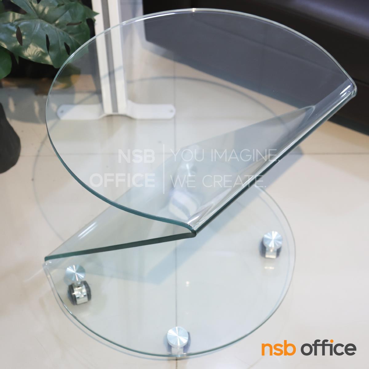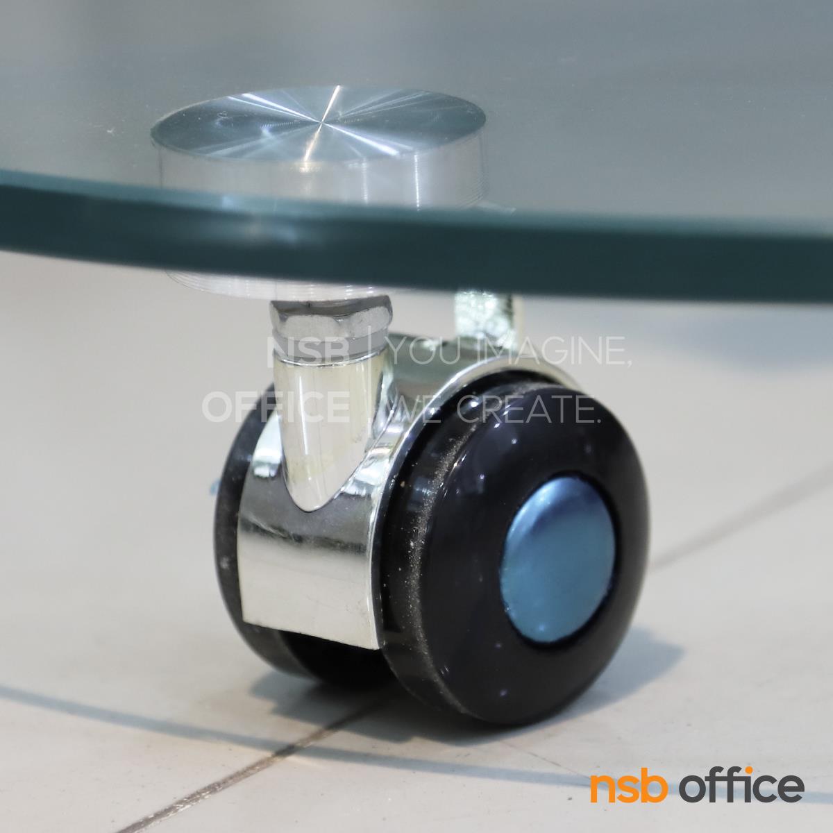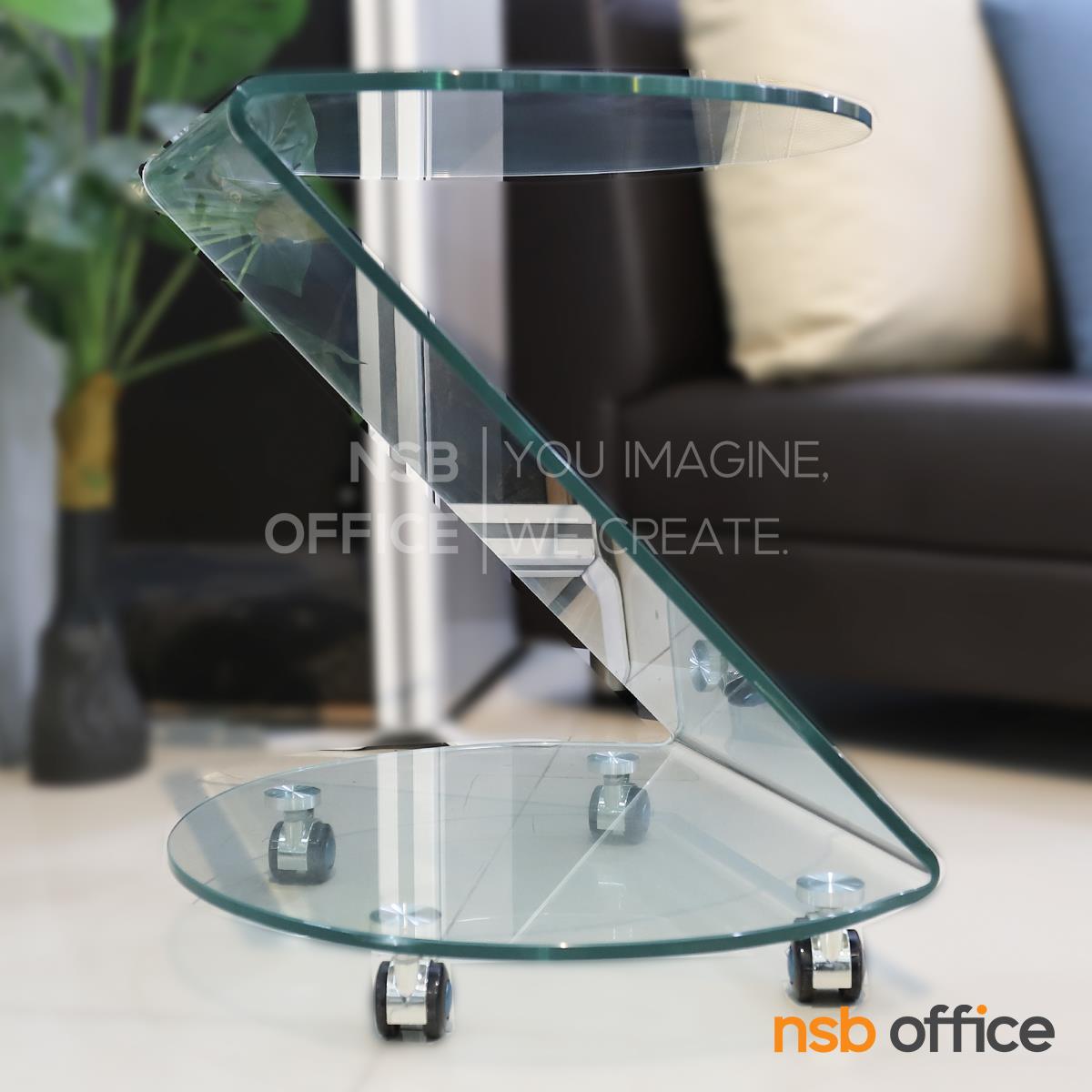 B13A348: โต๊ะข้างกระจกดัดโค้ง รุ่น Marvolo (มาร์โวโล่) ขนาด 50W*51H cm. ล้อเลื่อน