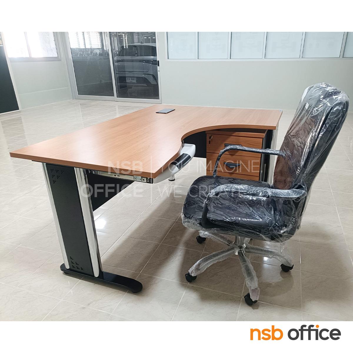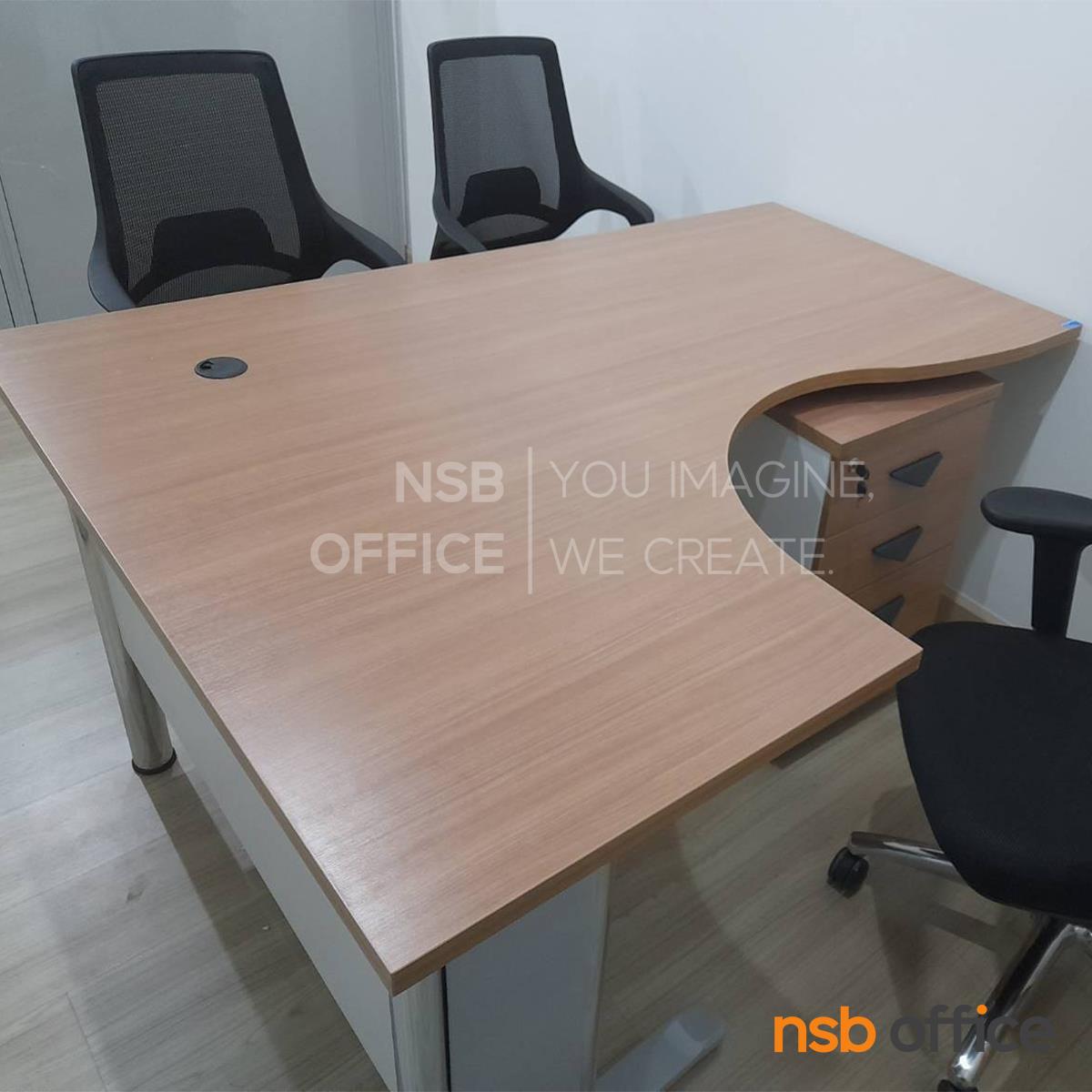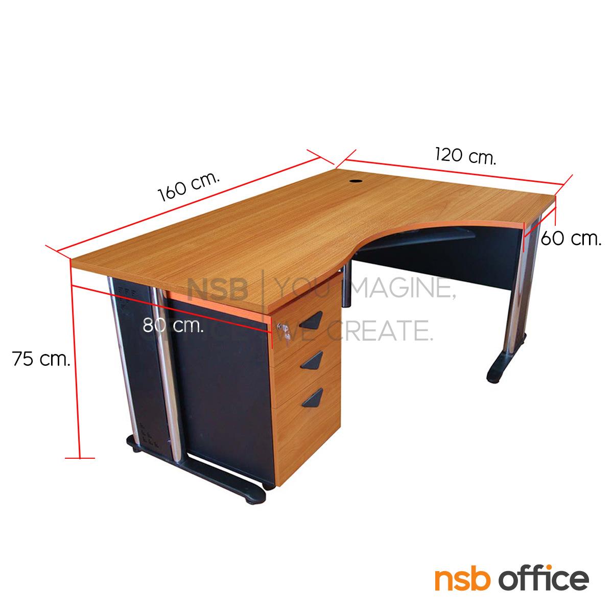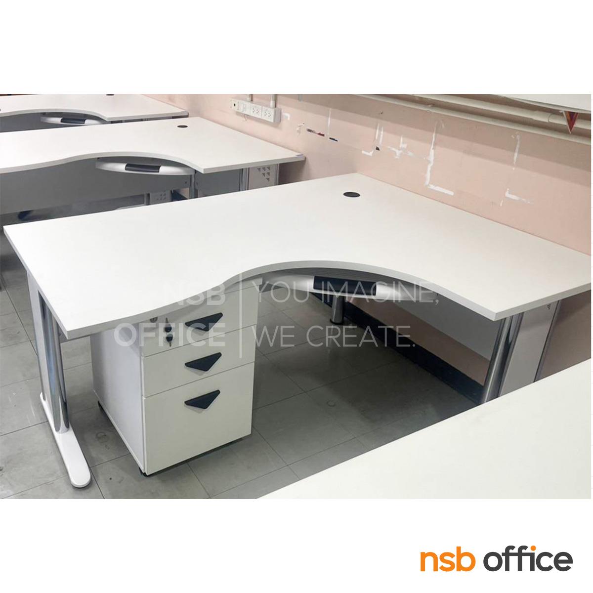 A16A099: โต๊ะทำงานตัวแอลหน้าโค้งเว้า รุ่น Calab (คาแลบ) ขนาด 160W1*120W2 cm. ตู้ 3 ลิ้นชักล้อเลื่อน