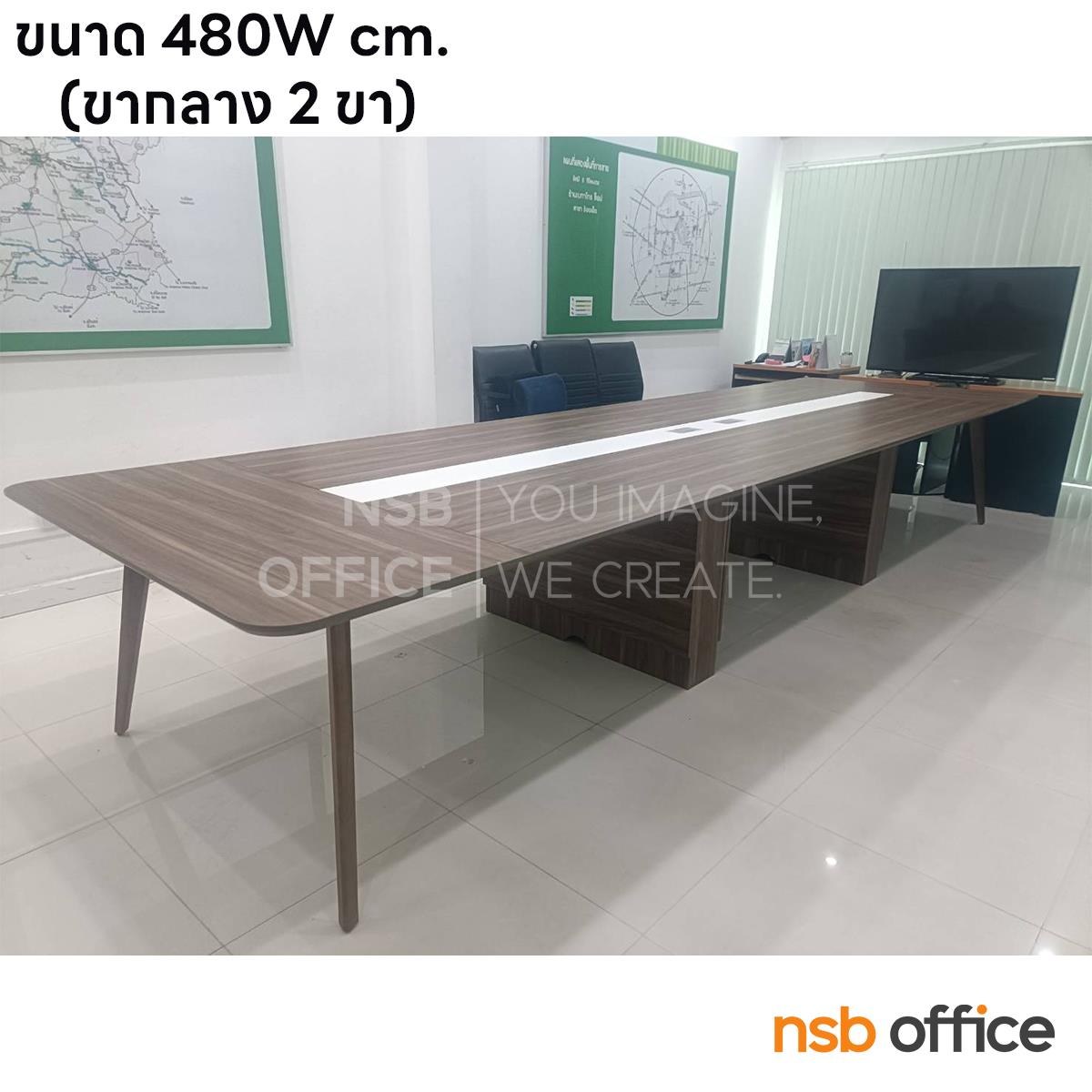 : โต๊ะประชุมทรงเหลี่ยมมุมมน รุ่น Jacob ll (เจคอบ 2) ขนาด 480W*140D*75H ขาไม้จริง