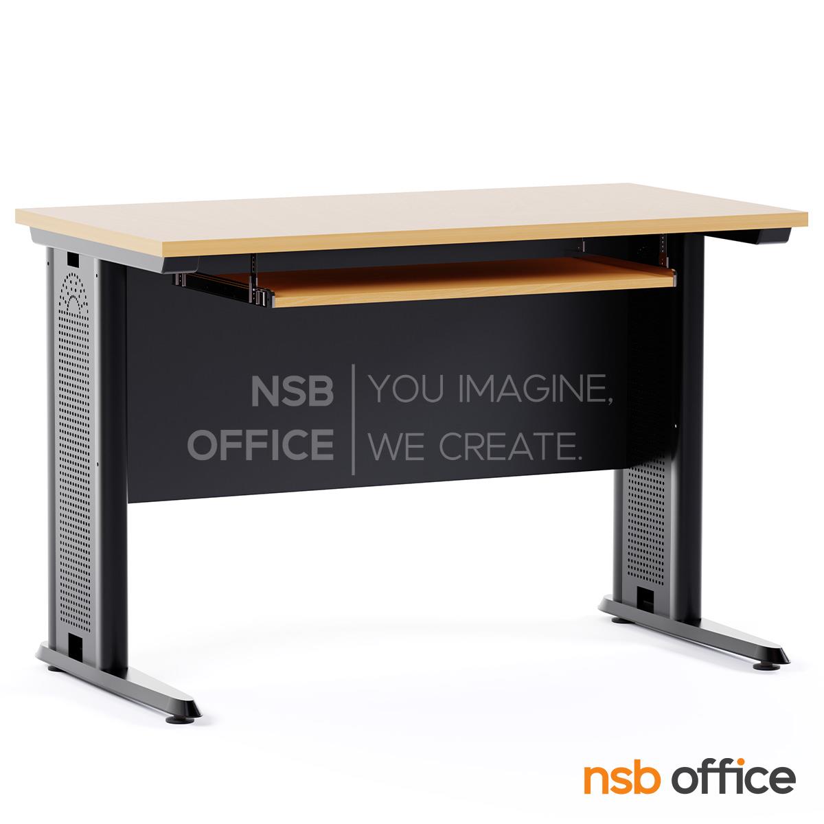 A10A120: โต๊ะทำงาน บังโป๊ไม้ รุ่น Novem (โนเวม) ขนาด 60D, 75D cm. ขาเหล็กตัวแอล พร้อมรางคีย์บอร์ด