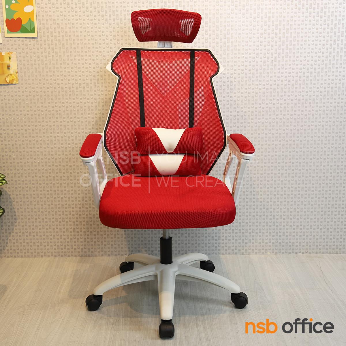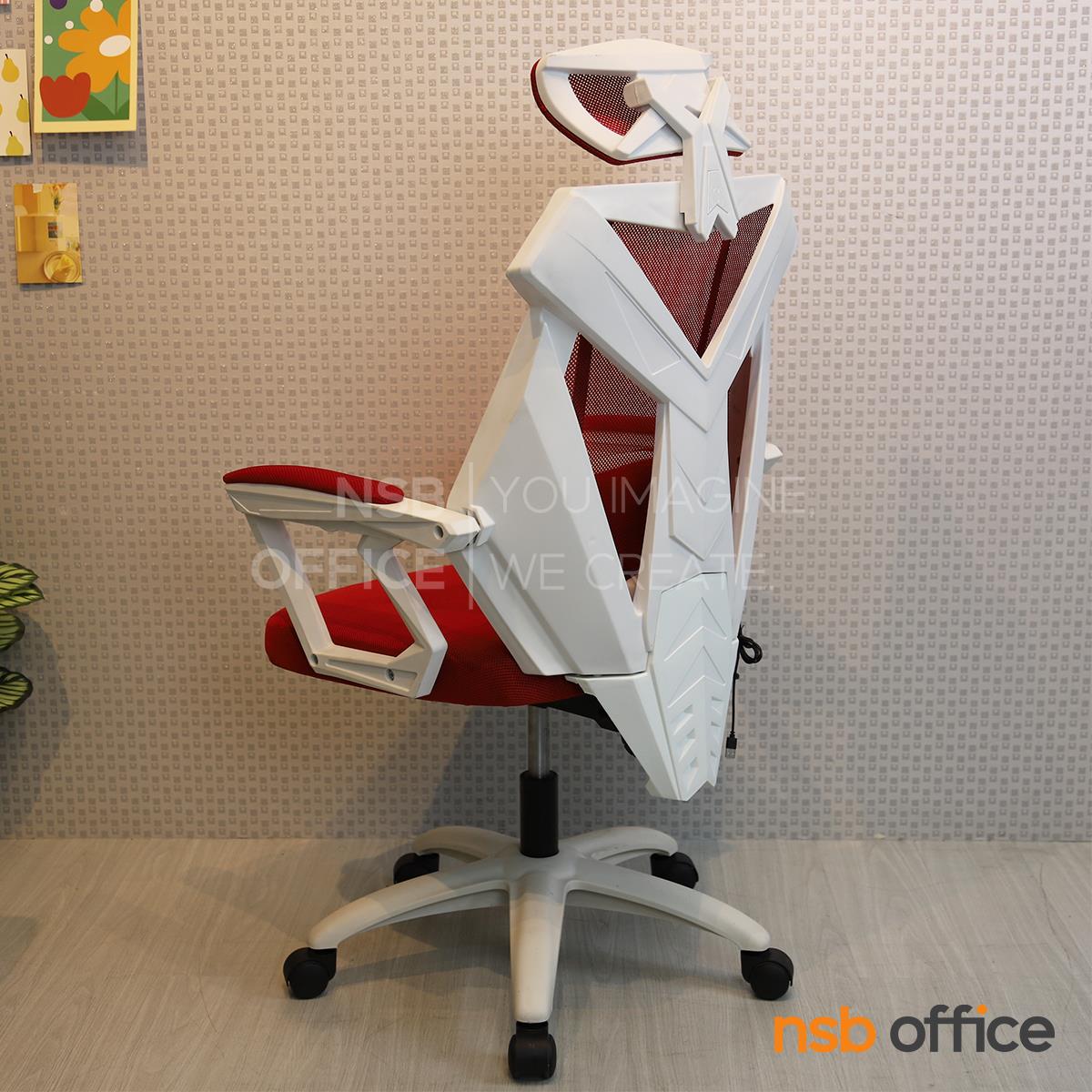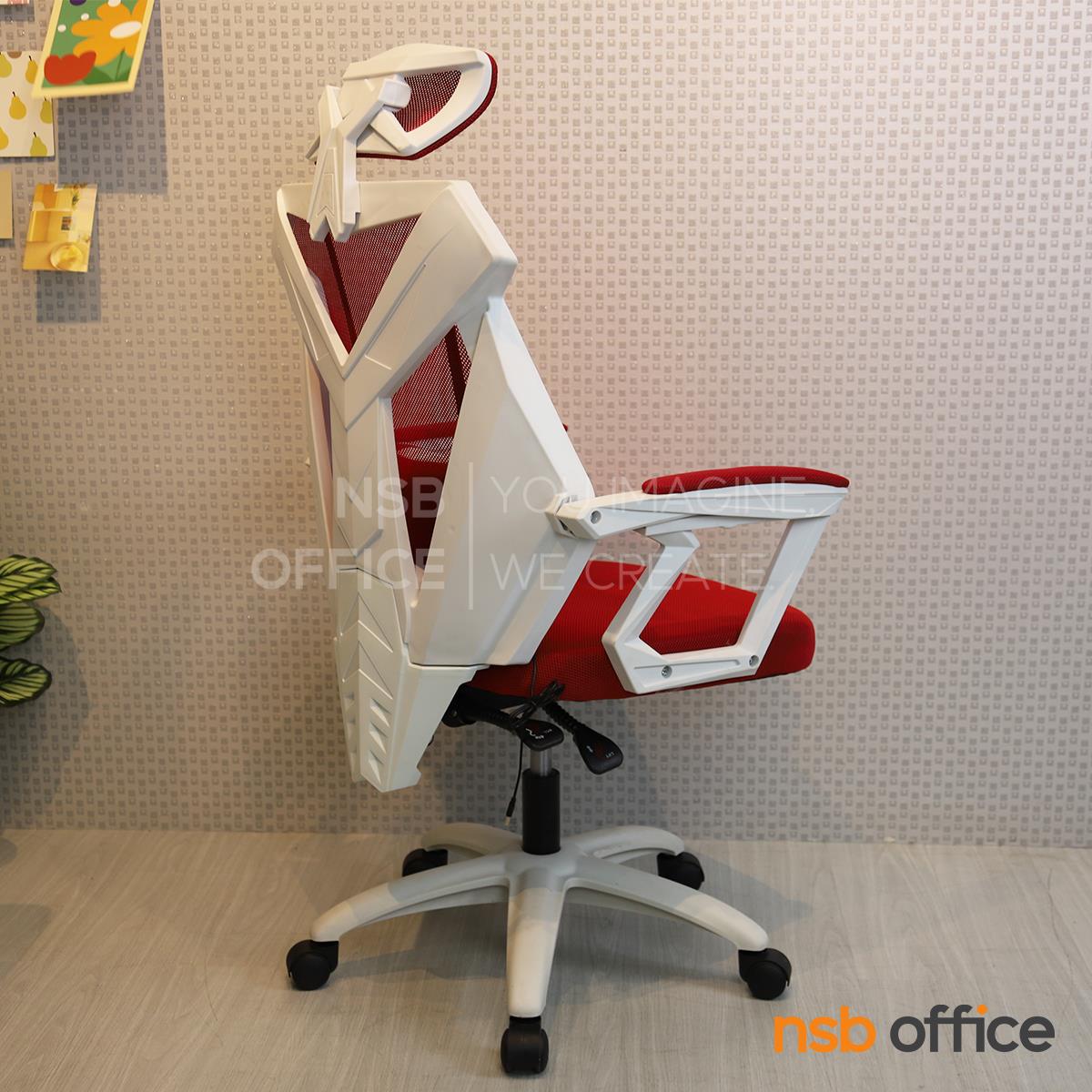 พนักพิงผลิตจากผ้าตาข่าย (Mesh) คุณสมบัติระบายอากาศได้ดี ลดความร้อนสะสมขณะใช้งาน พร้อมโครงสร้างรองรับแผ่นหลังเพื่อความสบายและรองรับสรีระในการนั่งทำงานระยะยาว
