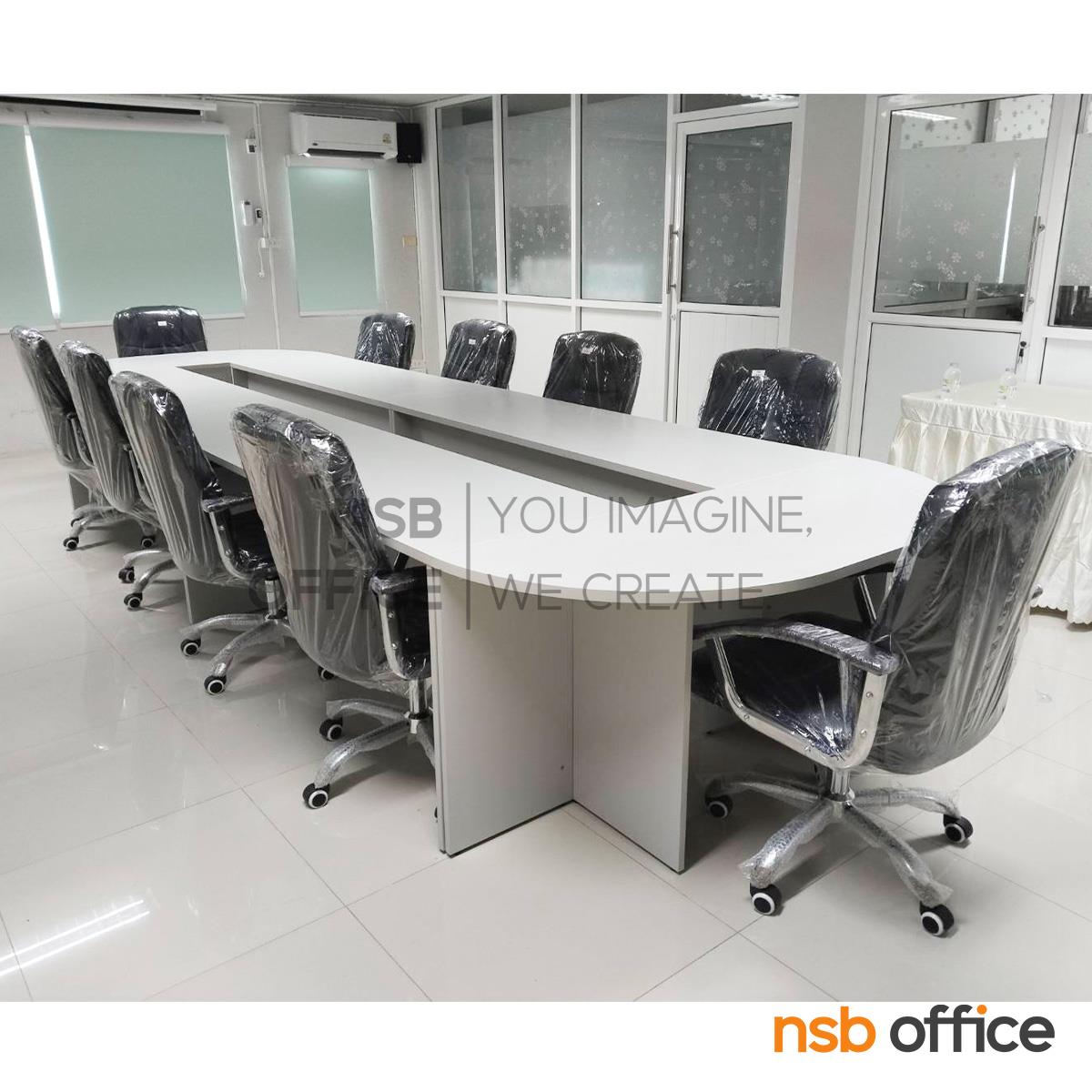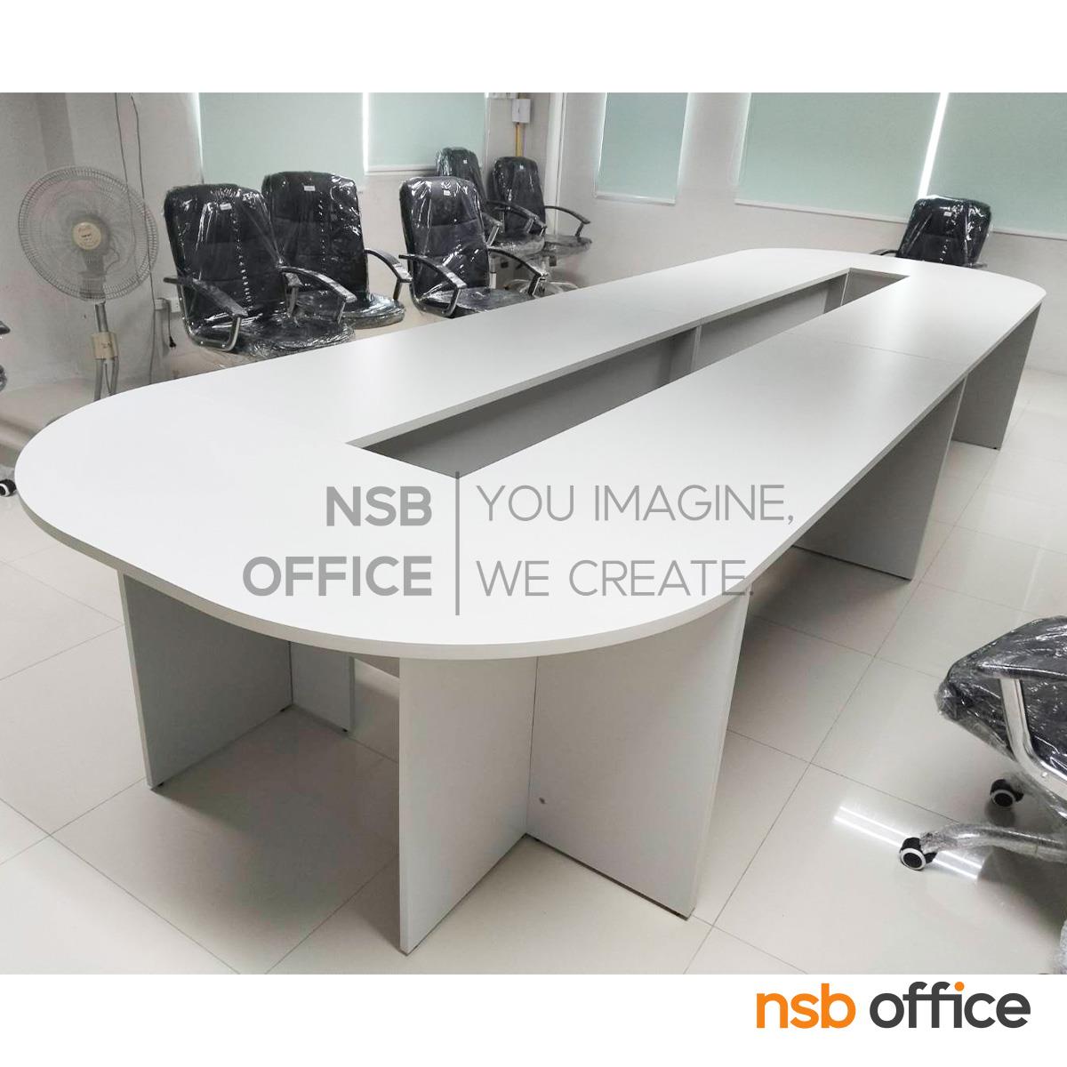: โต๊ะประชุมหัวโค้ง รุ่น Miner (ไมเนอร์) ขนาด 360W cm. (10 ที่นั่ง) เมลามีน ขาไม้