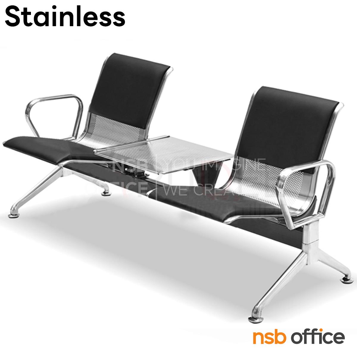 B06A165: เก้าอี้นั่งคอยสแตนเลส มีเบาะ แขนตัวโอ รุ่น Synnex (ซินเน็กซ์) 2 ที่นั่ง + 1 ที่วางของ