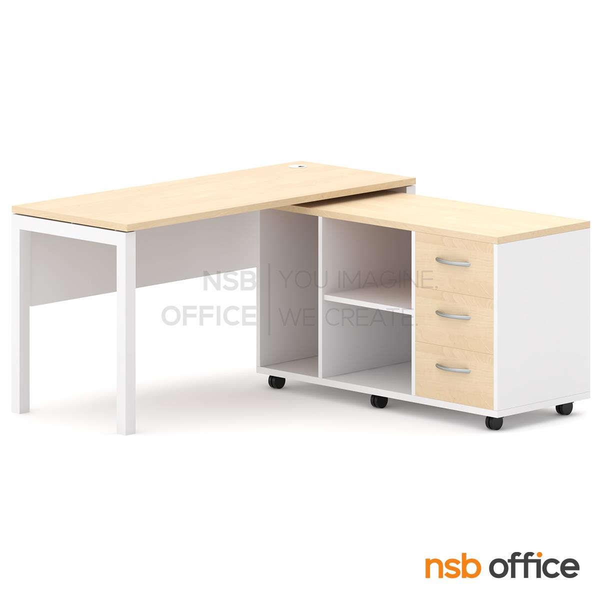 โต๊ะทำงานตัวแอลมีตู้เอกสารล้อเลื่อนต่อข้าง