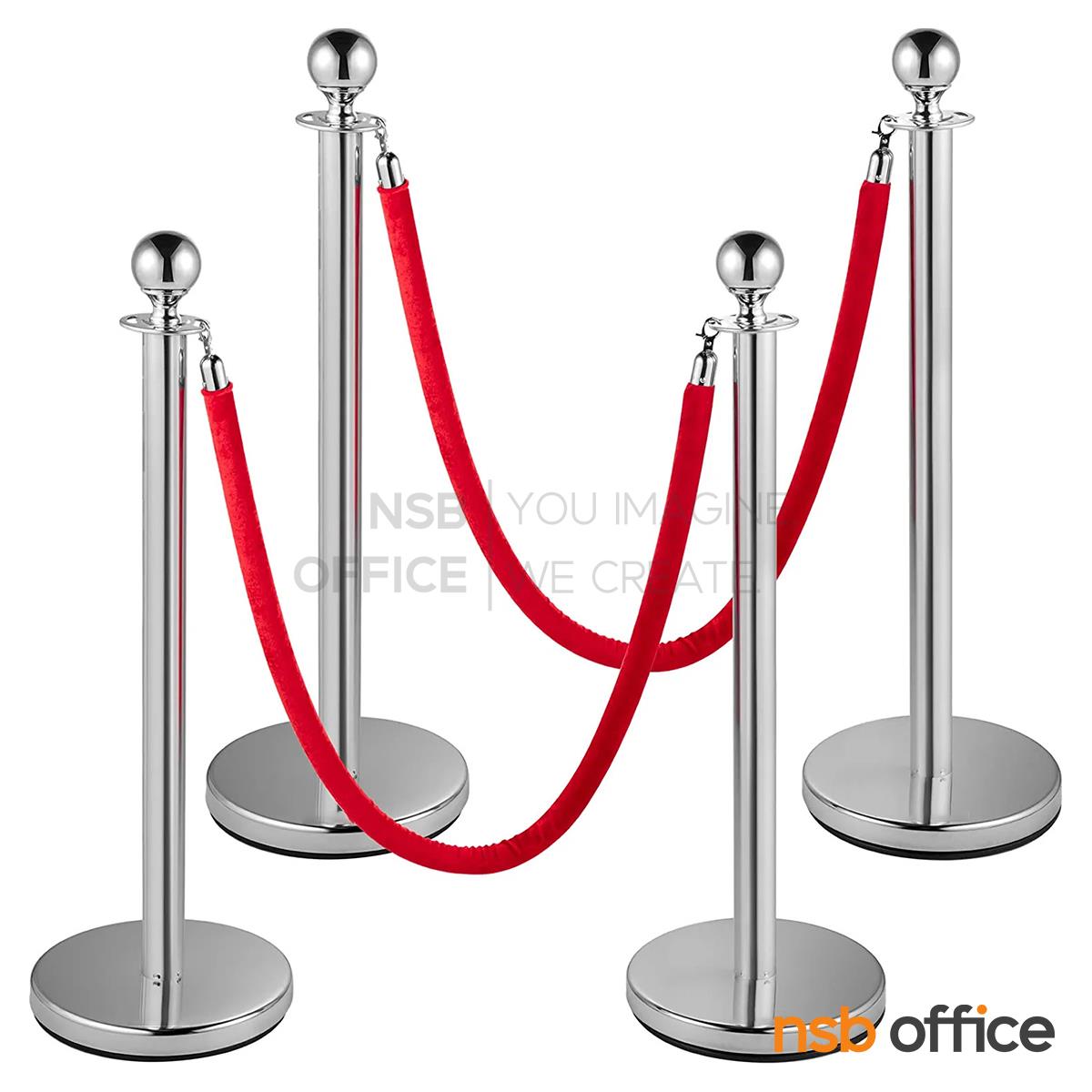 : เสากั้นทางเดินสีเงิน รุ่น Silverstone (ซิลเวอร์สโตน) ตัวตั้ง (1 เสา พร้อมสายกั้นสีแดง 1 เส้น)