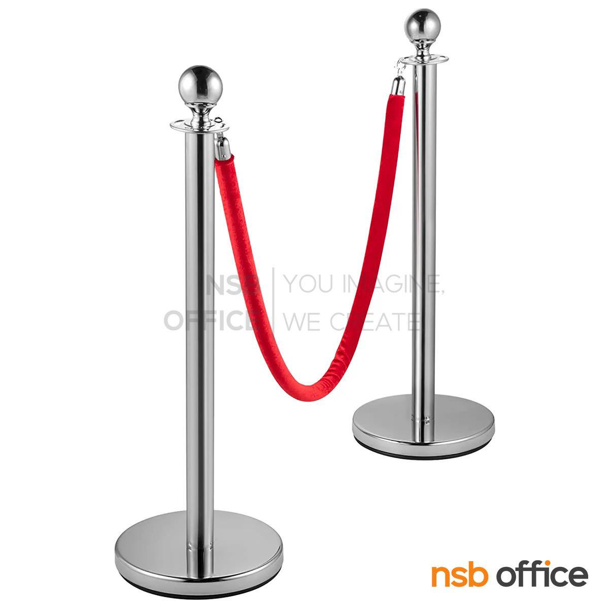 ตัวเสามีรูสำหรับเกี่ยวสายเชือกกั้นทางเดิน