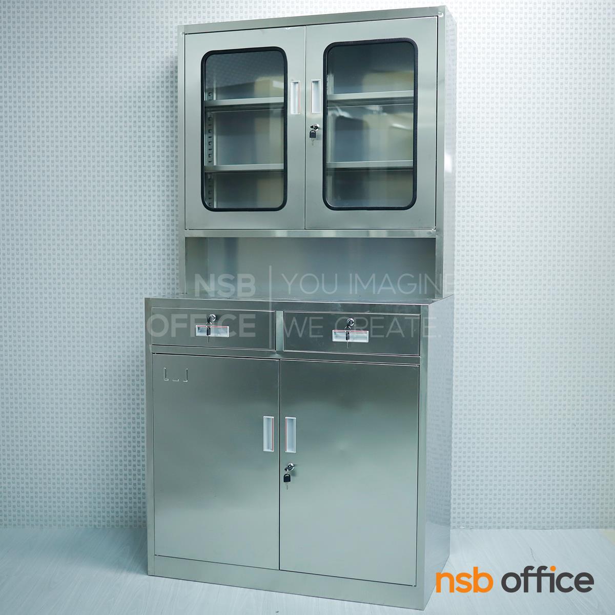 : ตู้เก็บยาสแตนเลส Cosmo (คอสโม) 2 บานเปิดกระจก 2 ลิ้นชัก 2 บานเปิดทึบ