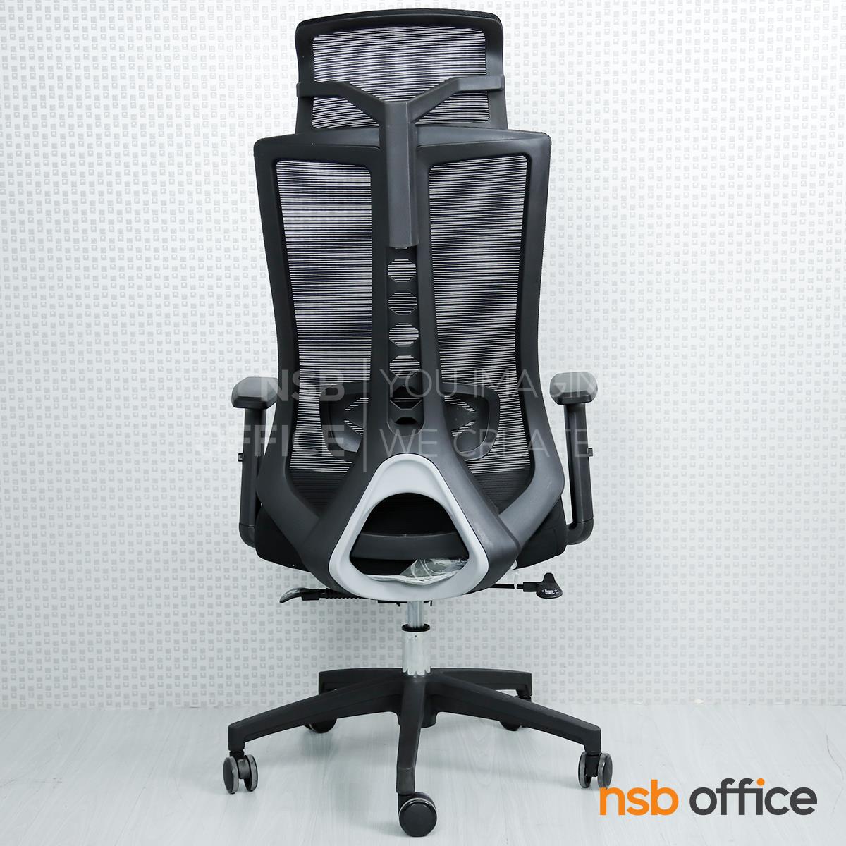 พนักพิงผลิตจากผ้าตาข่าย (Mesh) คุณสมบัติระบายอากาศได้ดี ลดความร้อนสะสมขณะใช้งาน พร้อมโครงสร้างรองรับแผ่นหลังเพื่อความสบายและรองรับสรีระในการนั่งทำงานระยะยาว