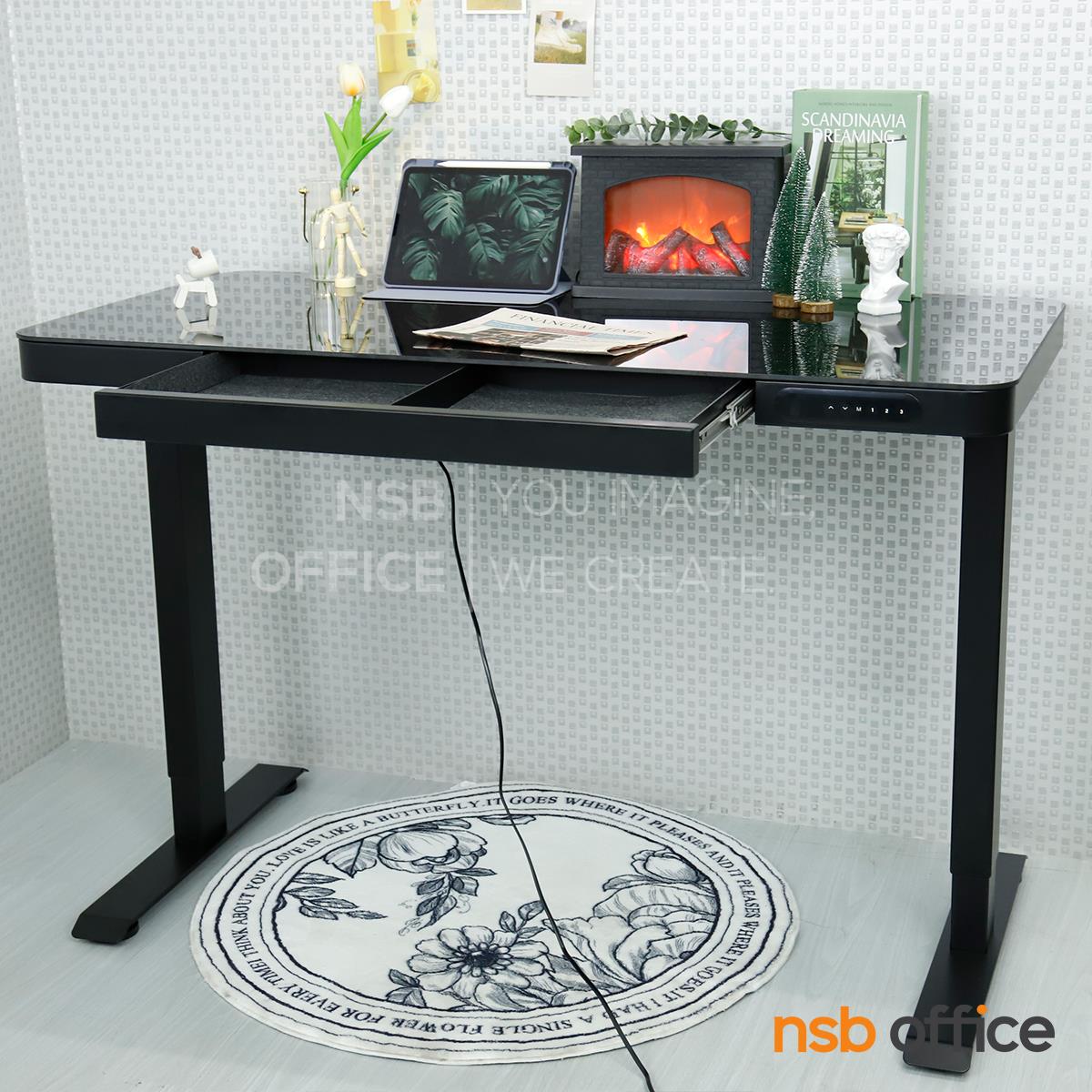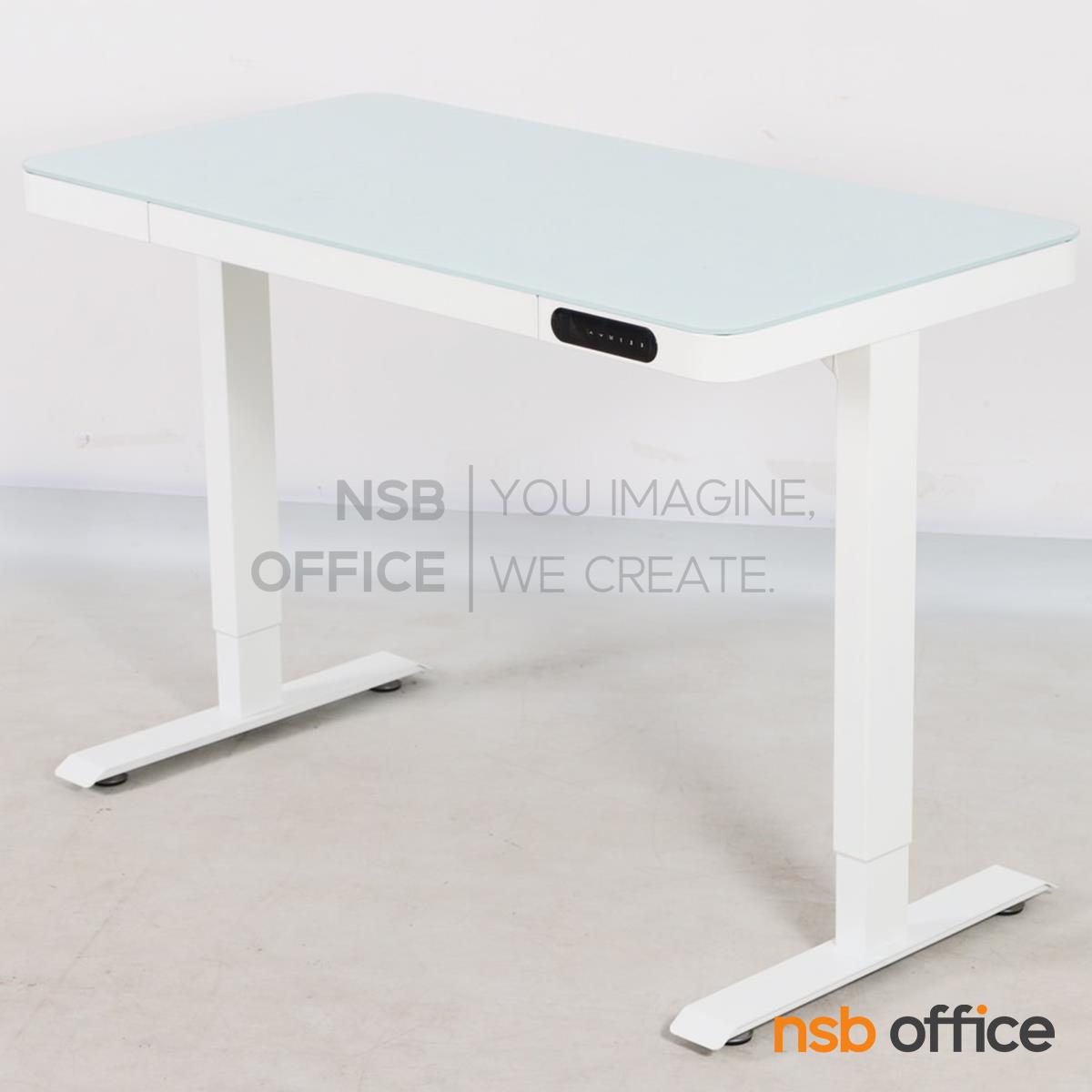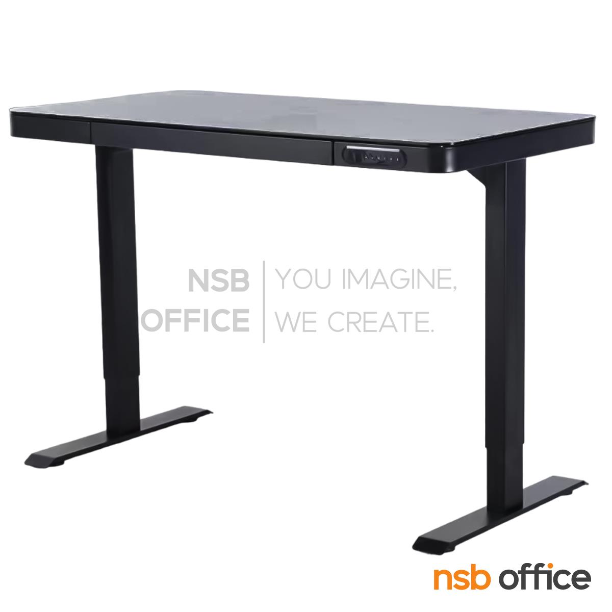 A44A010: โต๊ะปรับระดับไฟฟ้า หน้าท็อปกระจกนิรภัย รุ่น Tyrax (ไทแรกซ์) ขาเหล็กเหลี่ยม