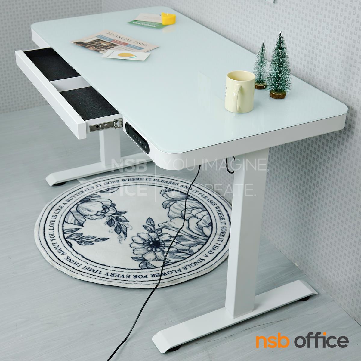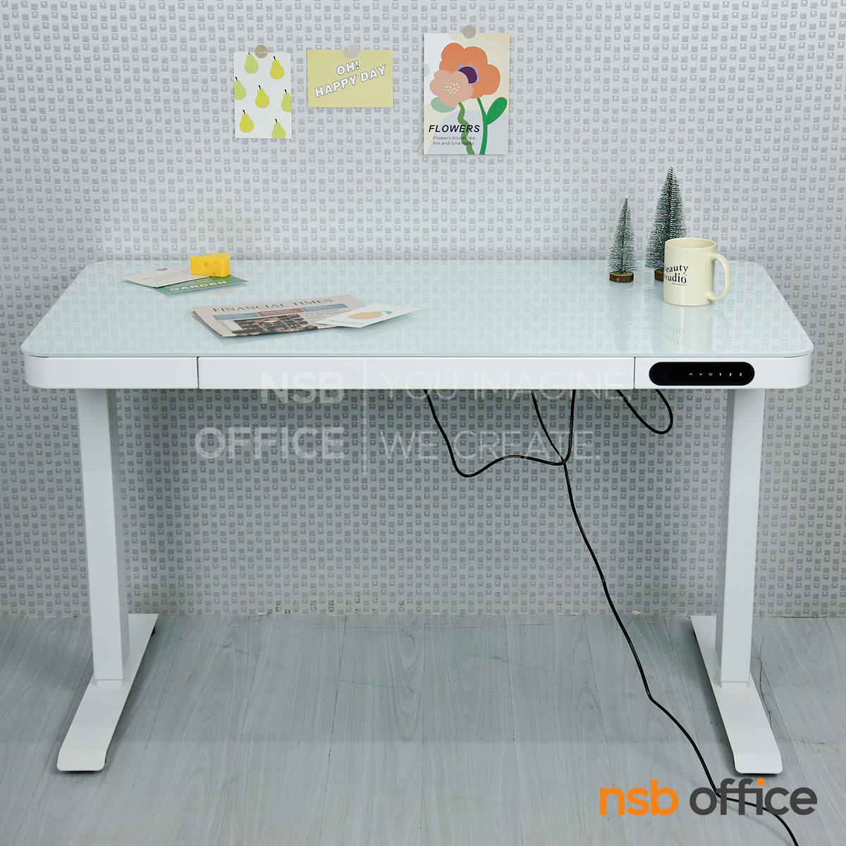: โต๊ะปรับระดับไฟฟ้า หน้าท็อปกระจกนิรภัย รุ่น Tyrax (ไทแรกซ์) สีขาว ขาเหล็กเหลี่ยม