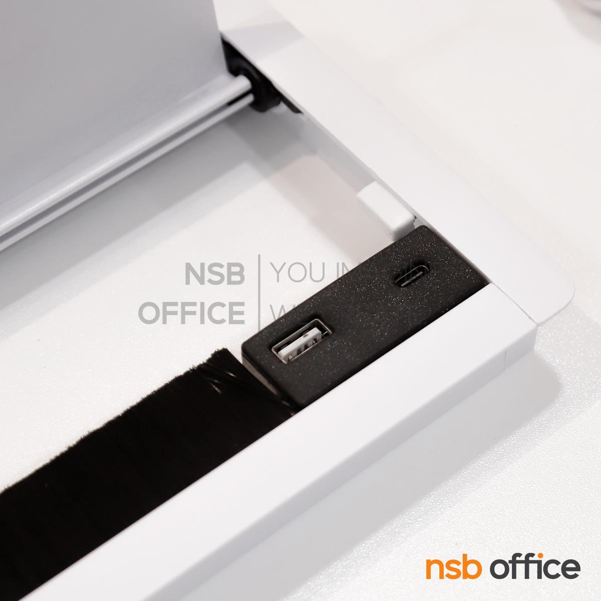 ลูกค้าสามารถเลือกติดตั้ง กล่องรางไฟ เพิ่มเติมใต้แผ่นท็อปได้ เพื่อการใช้งานกับปลั๊กไฟใต้โต๊ะ