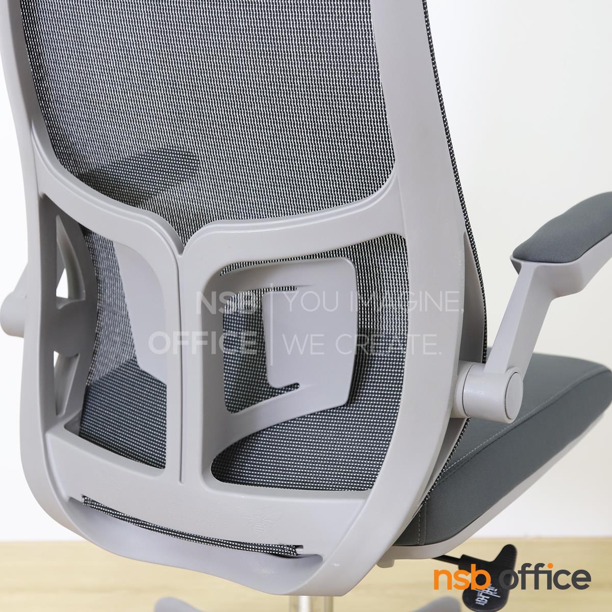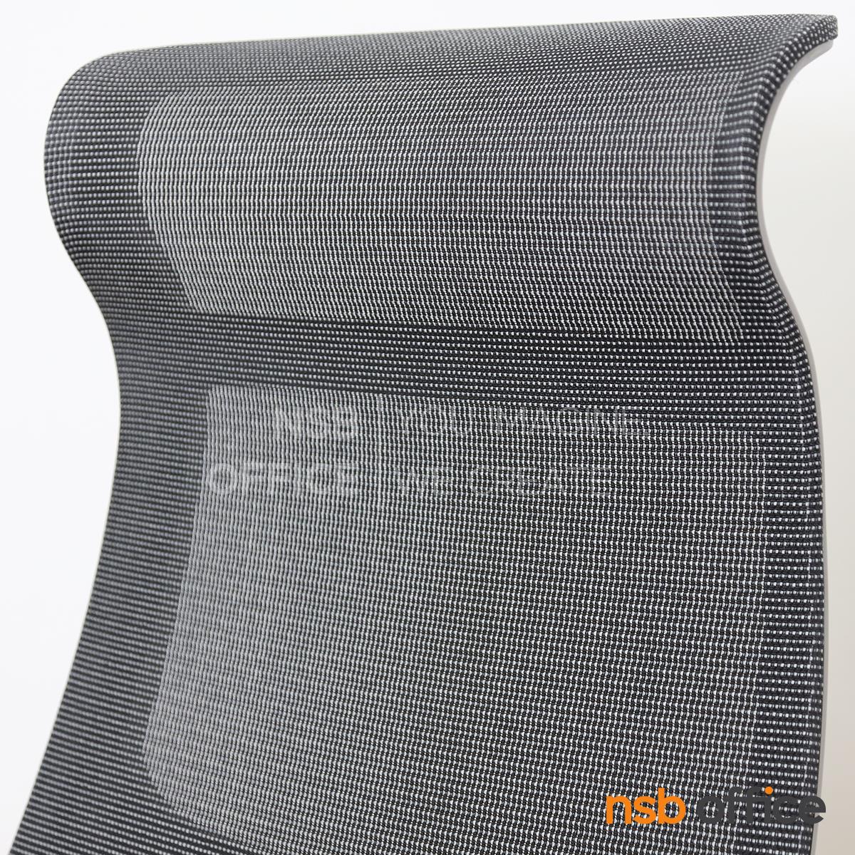 พนักพิงผลิตจากผ้าตาข่าย (Mesh) คุณสมบัติระบายอากาศได้ดี ลดความร้อนสะสมขณะใช้งาน พร้อมโครงสร้างรองรับแผ่นหลังเพื่อความสบายและรองรับสรีระในการนั่งทำงานระยะยาว