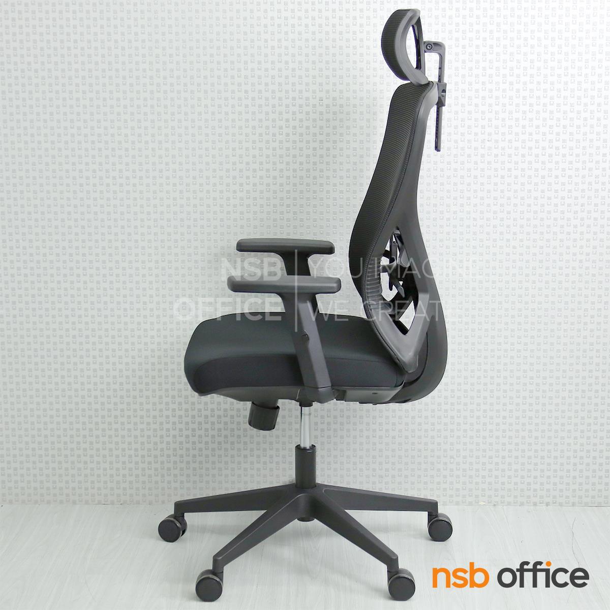 พนักพิงผลิตจากผ้าตาข่าย (Mesh) คุณสมบัติระบายอากาศได้ดี ลดความร้อนสะสมขณะใช้งาน พร้อมโครงสร้างรองรับแผ่นหลังเพื่อความสบายและรองรับสรีระในการนั่งทำงานระยะยาว