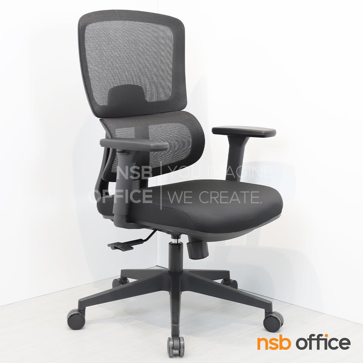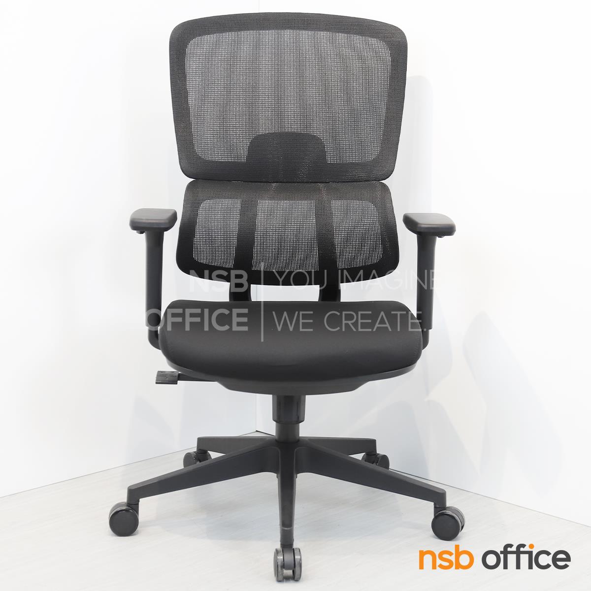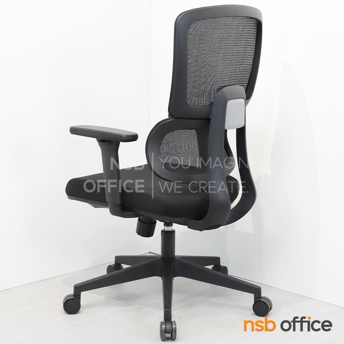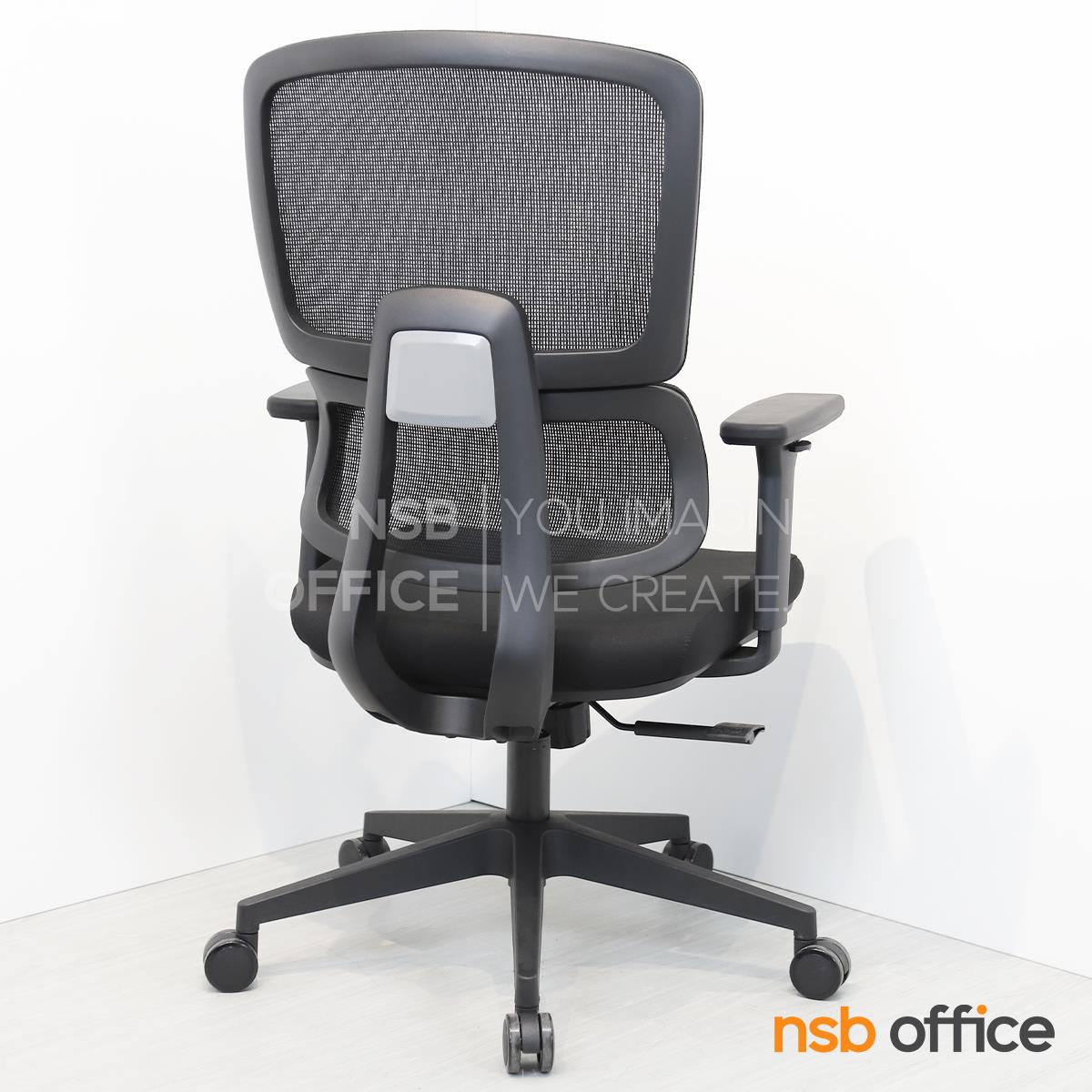 พนักพิงผลิตจากผ้าตาข่าย (Mesh) คุณสมบัติระบายอากาศได้ดี ลดความร้อนสะสมขณะใช้งาน พร้อมโครงสร้างรองรับแผ่นหลังเพื่อความสบายและรองรับสรีระในการนั่งทำงานระยะยาว