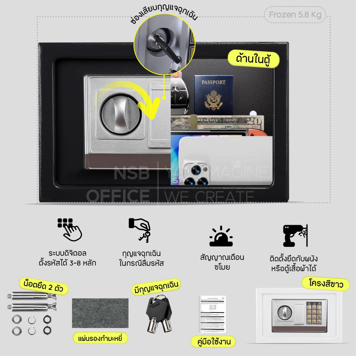 : ตู้เซฟดิจิตอล รุ่น Freesia (ฟรีเซีย) สีขาว 1 รหัส (รหัสใช้กดหน้าตู้)