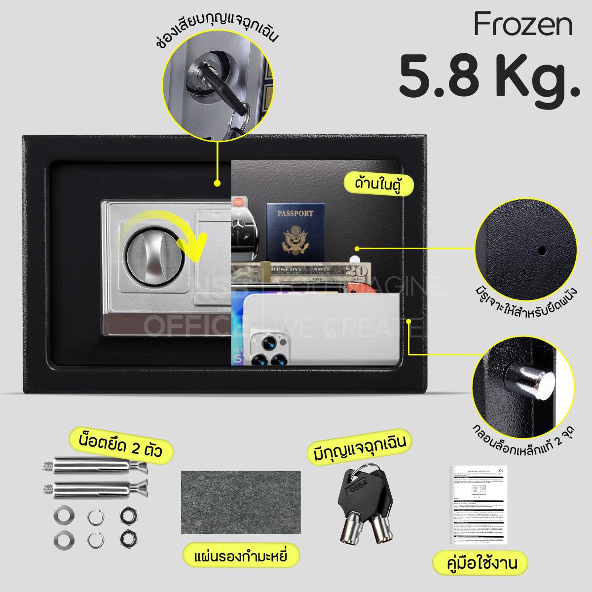 F03A024: ตู้เซฟดิจิตอล 5.8 kg รุ่น frozen (โฟรเซน) สีดำ 1 รหัส