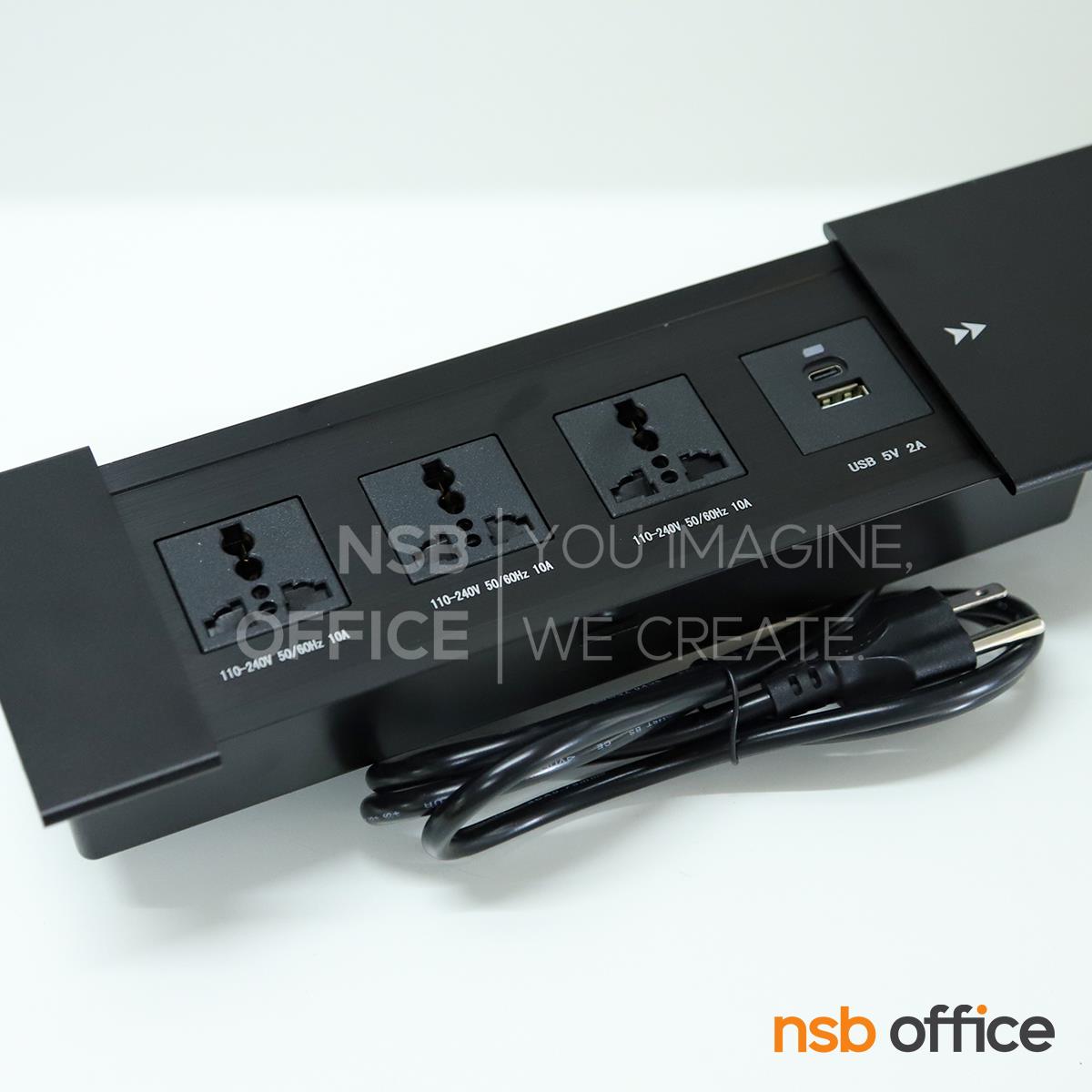 A24A077: ป๊อปอัพฝาสไลด์ 3 Power 2 USB (A+C) รุ่น Contoria (คอนโทเรีย) มีสายปลั๊กไฟ