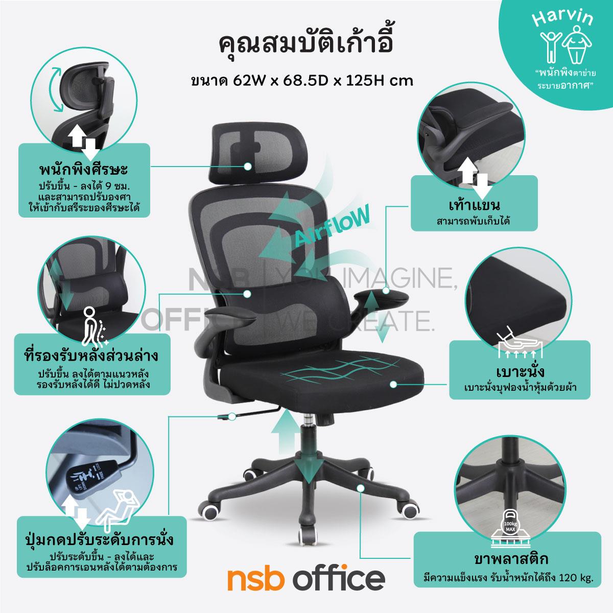 B28A157: เก้าอี้ผู้บริหารหลังเน็ต รุ่น Harvin (ฮาร์วิน) โช้คแก๊ส ก้อนโยก ขาพลาสติก