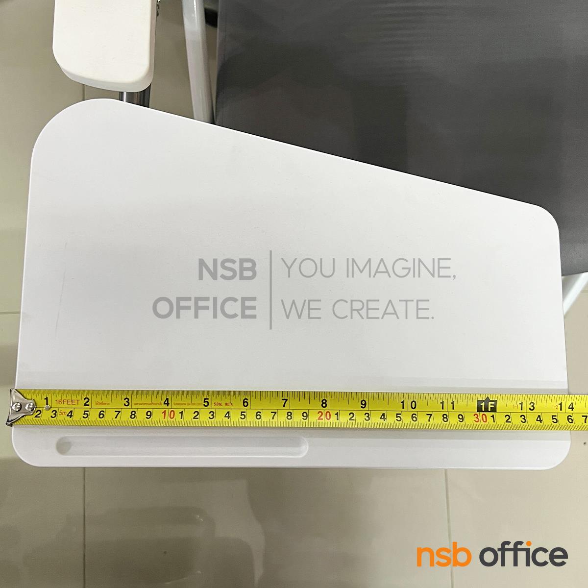 เท้าแขนแผ่นเลคเชอร์ของเก้าอี้อยู่ทางด้านขวา ออกแบบมาเพื่อการใช้งานสำหรับคนถนัดมือขวา