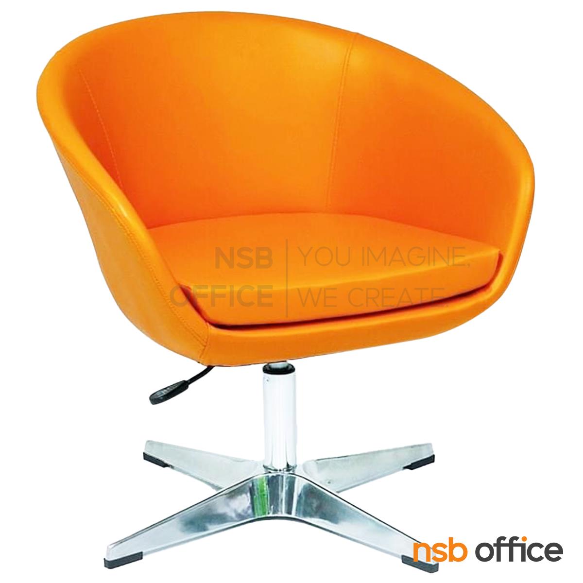 : เก้าอี้โมเดิร์นหนังเทียม รุ่น Coral (โครอล) สีส้มตามรูป โครงขาเหล็กชุบโครเมี่ยม