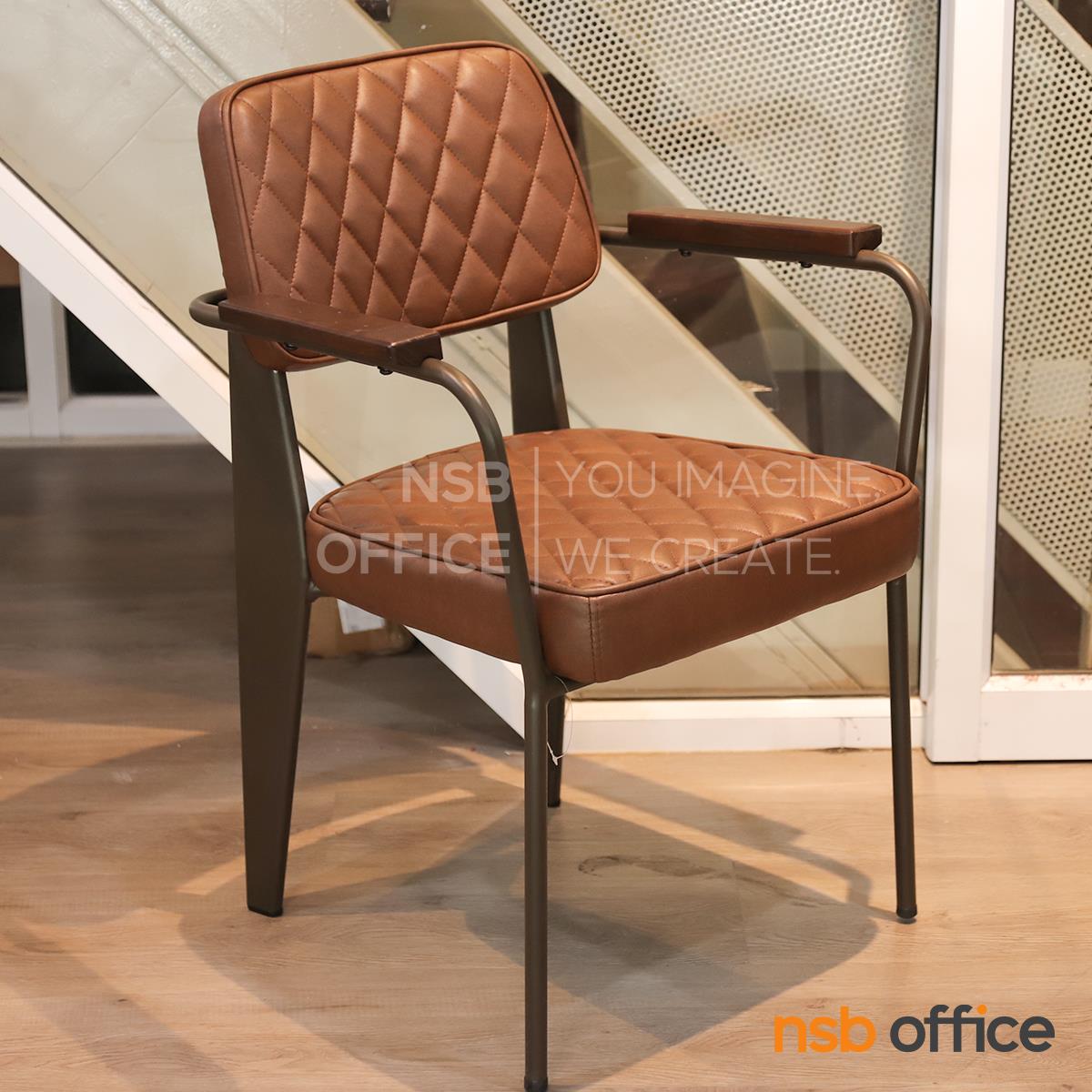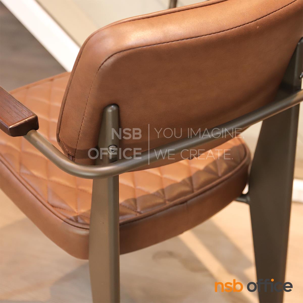 B29A435: เก้าอี้โมเดิร์นหุ้มหนัง รุ่น Brownie (บลาวนี่) ที่วางแขนไม้
