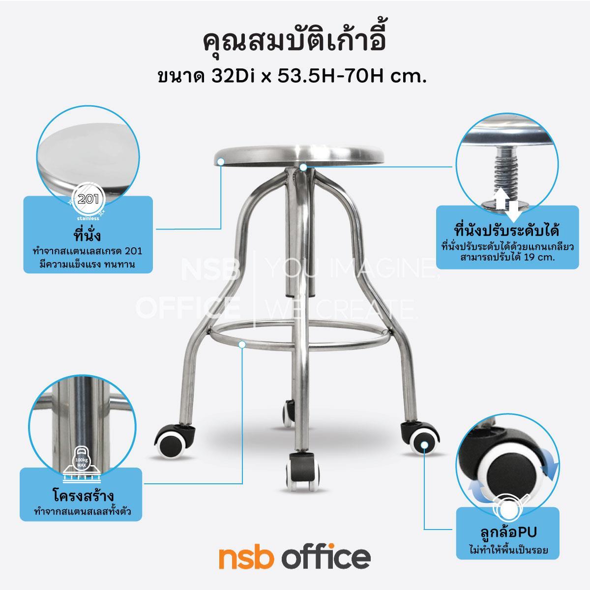: เก้าอี้บาร์สตูล มีล้อ สแตนเลสเกรด 201 รุ่น Bluewen (บลูเว่น) ปรับความสูงได้