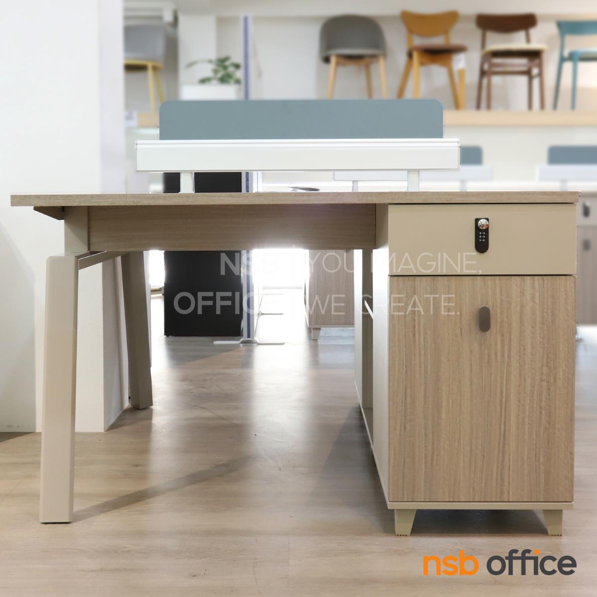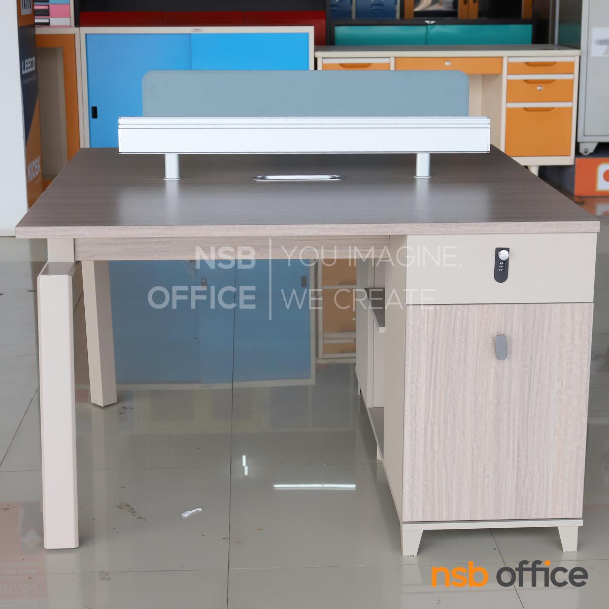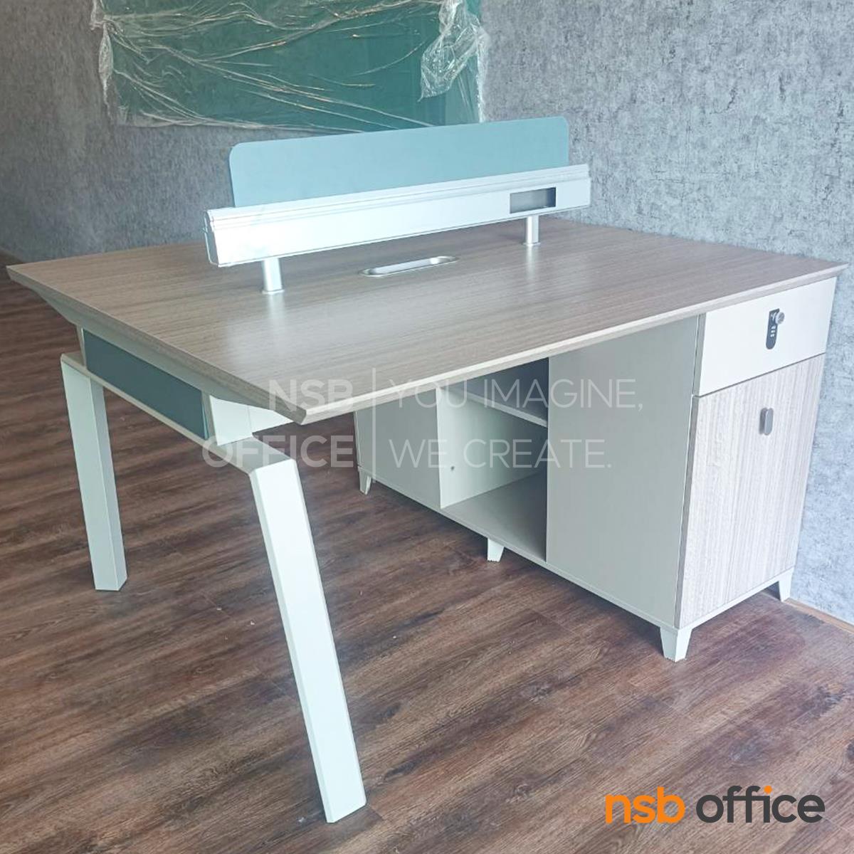 : ชุดโต๊ะทำงานกลุ่ม รุ่น Horton (ฮอร์ตัน) ขนาด 2 ที่นั่ง พร้อมมินิสกรีนและตู้ลิ้นชักล็อครหัส