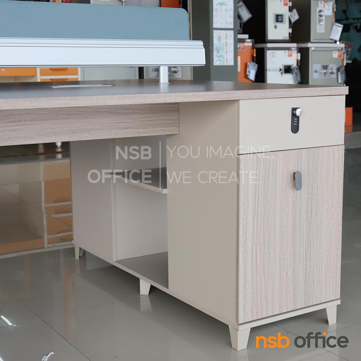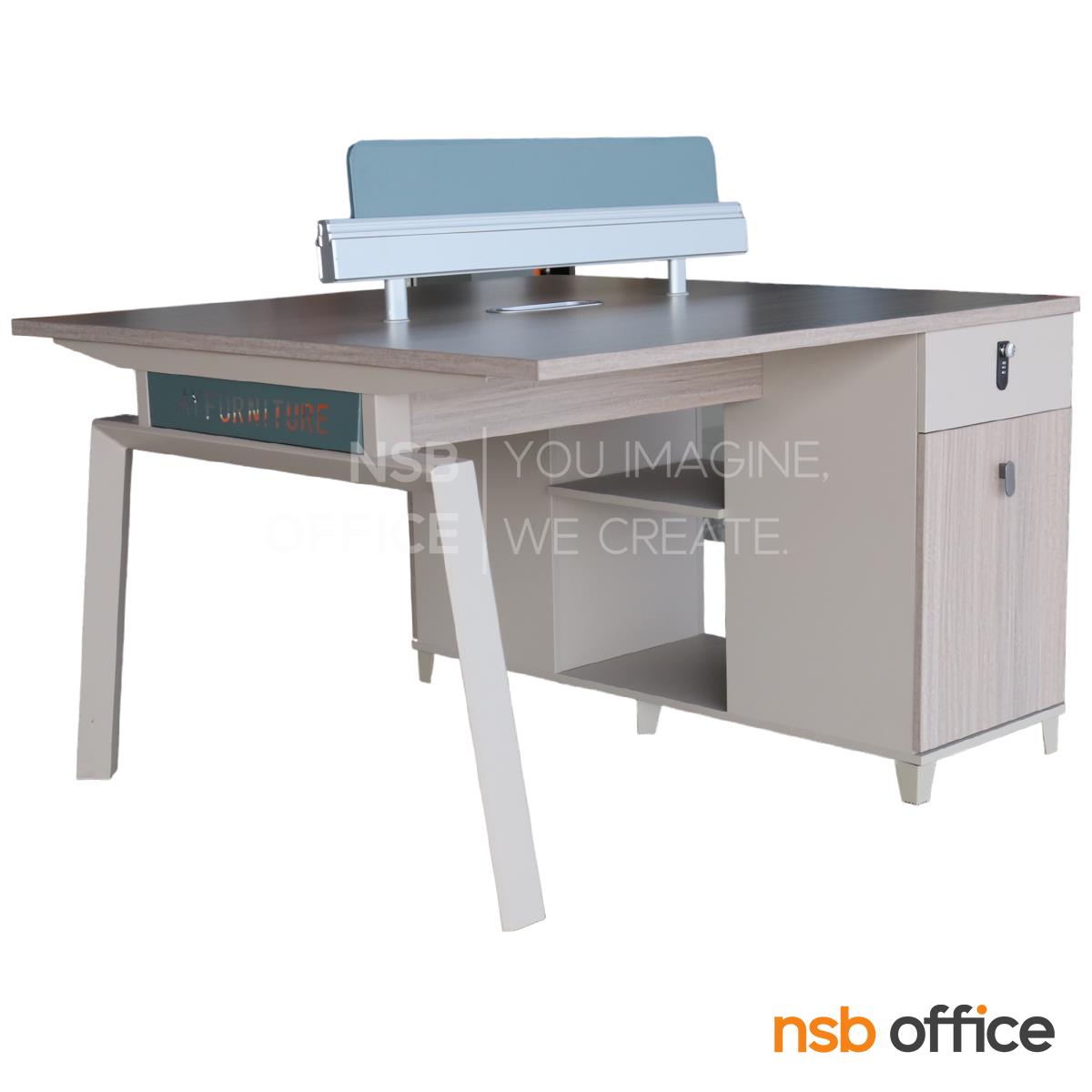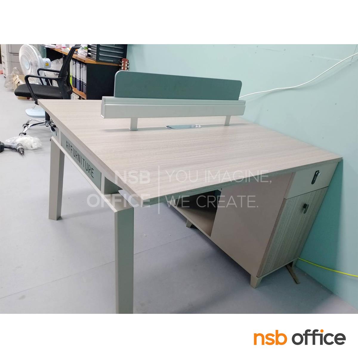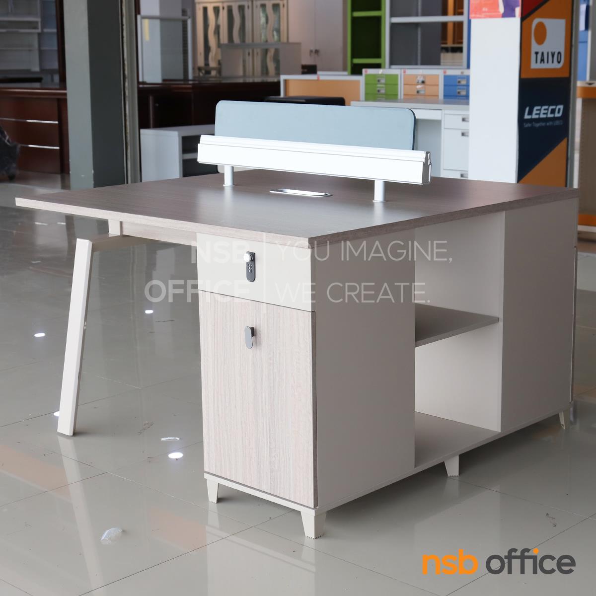 : ชุดโต๊ะทำงานกลุ่ม รุ่น Horton (ฮอร์ตัน) ขนาด 2 ที่นั่ง พร้อมมินิสกรีนและตู้ลิ้นชักล็อครหัส