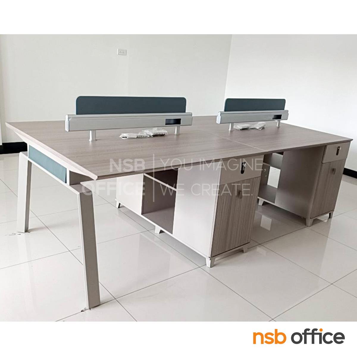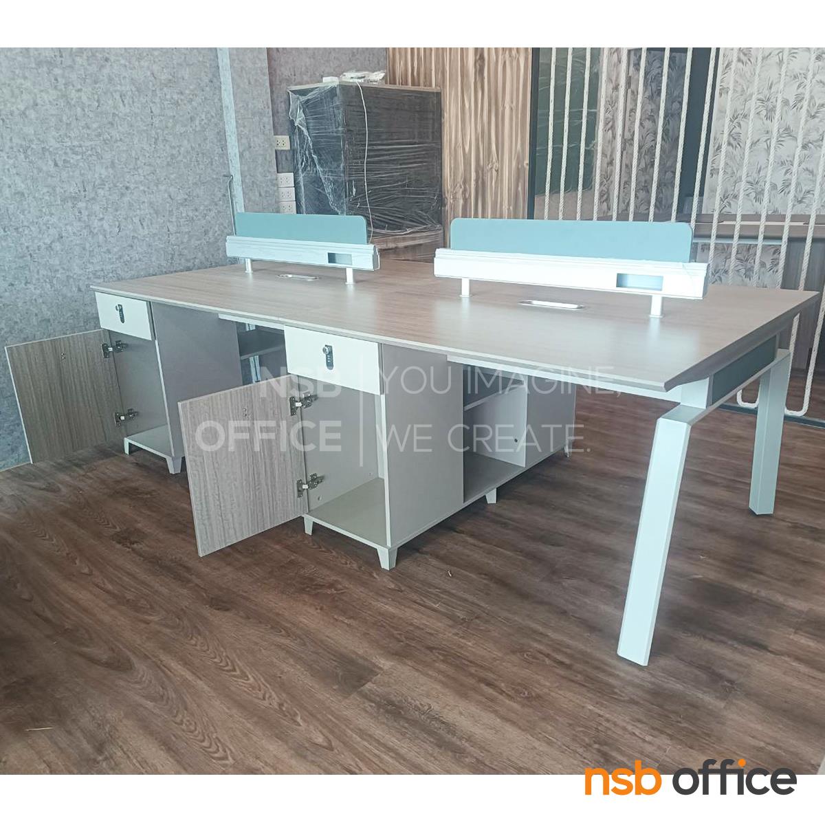 : ชุดโต๊ะทำงานกลุ่ม รุ่น Horton (ฮอร์ตัน) ขนาด 4 ที่นั่ง พร้อมมินิสกรีนและตู้ลิ้นชักล็อครหัส