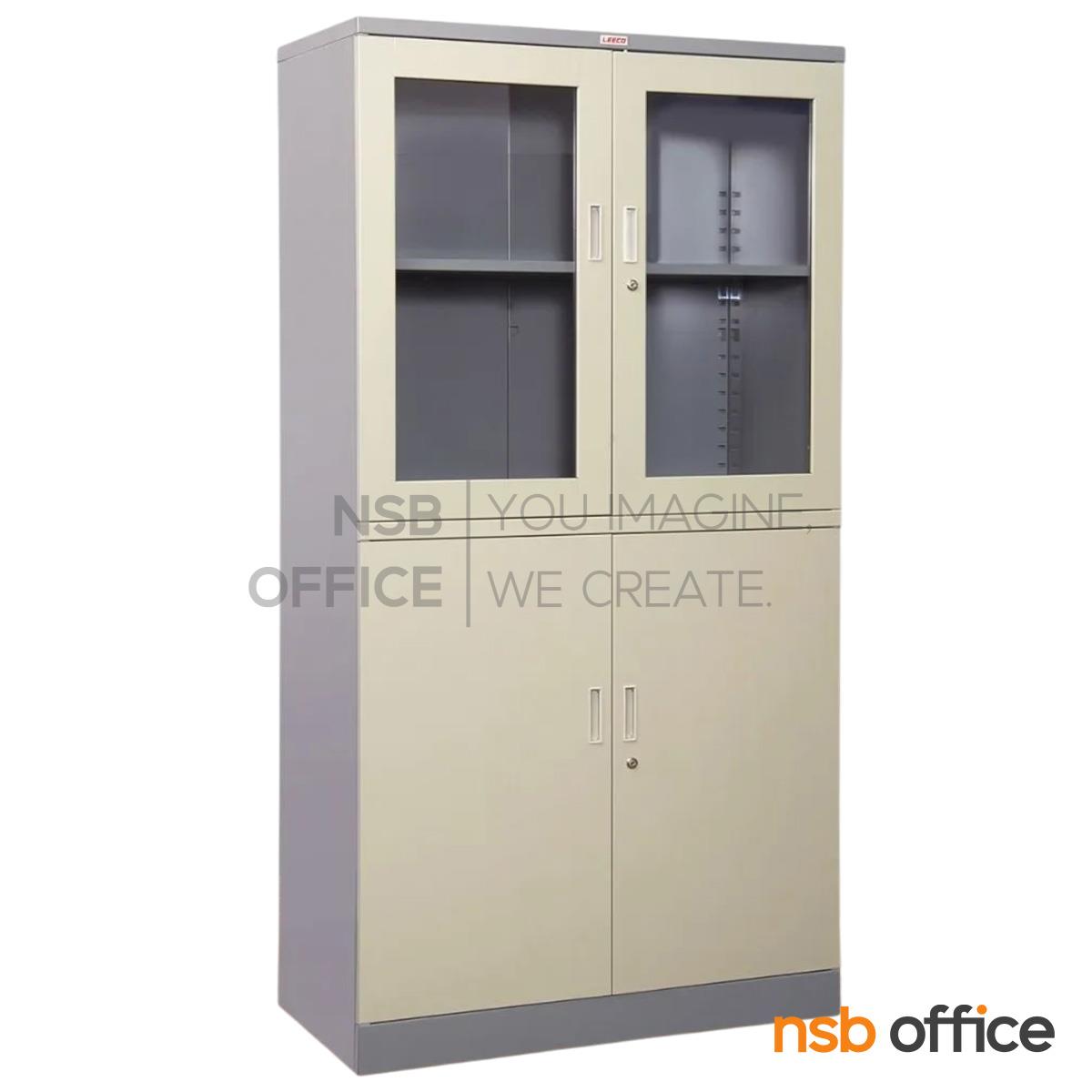 : ตู้เอกสารเหล็กบนบานเปิดกระจก-ล่างบานเปิดทึบ รุ่น CBD-06 ขนาด 91.4W* 47D* 181.7H cm. มือจับพลาสติก