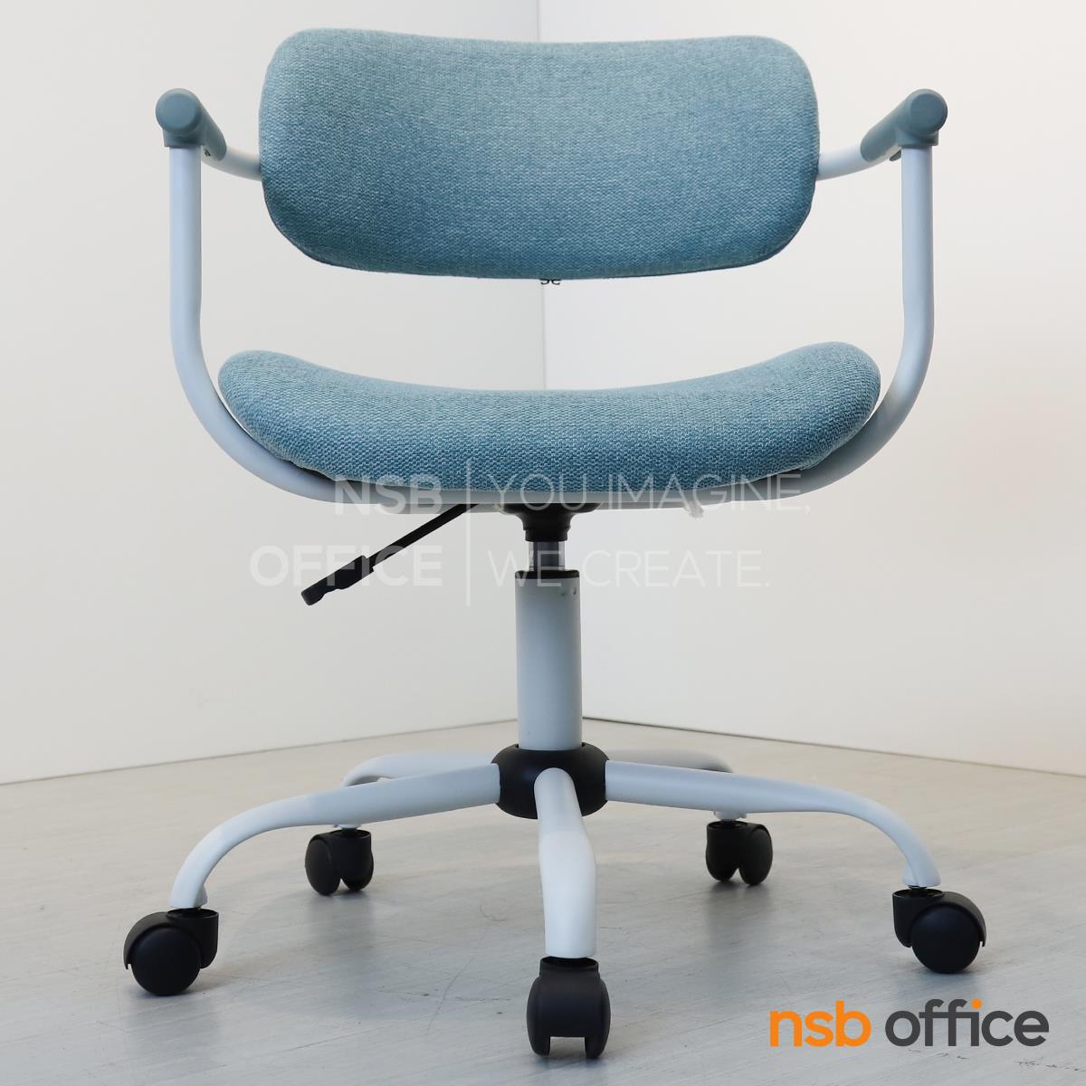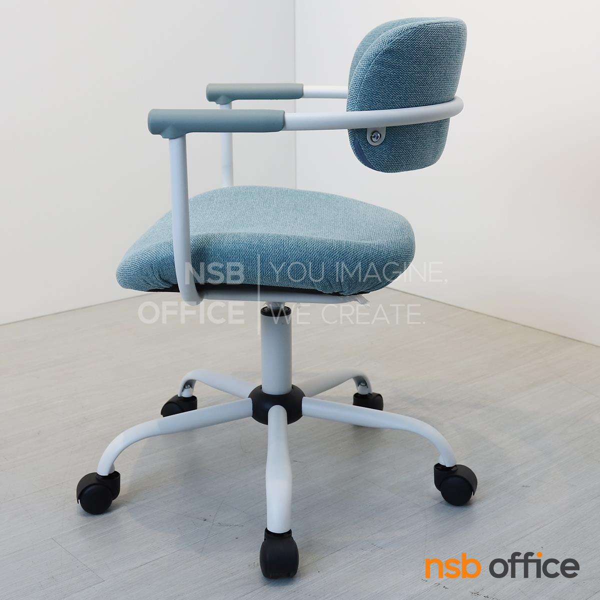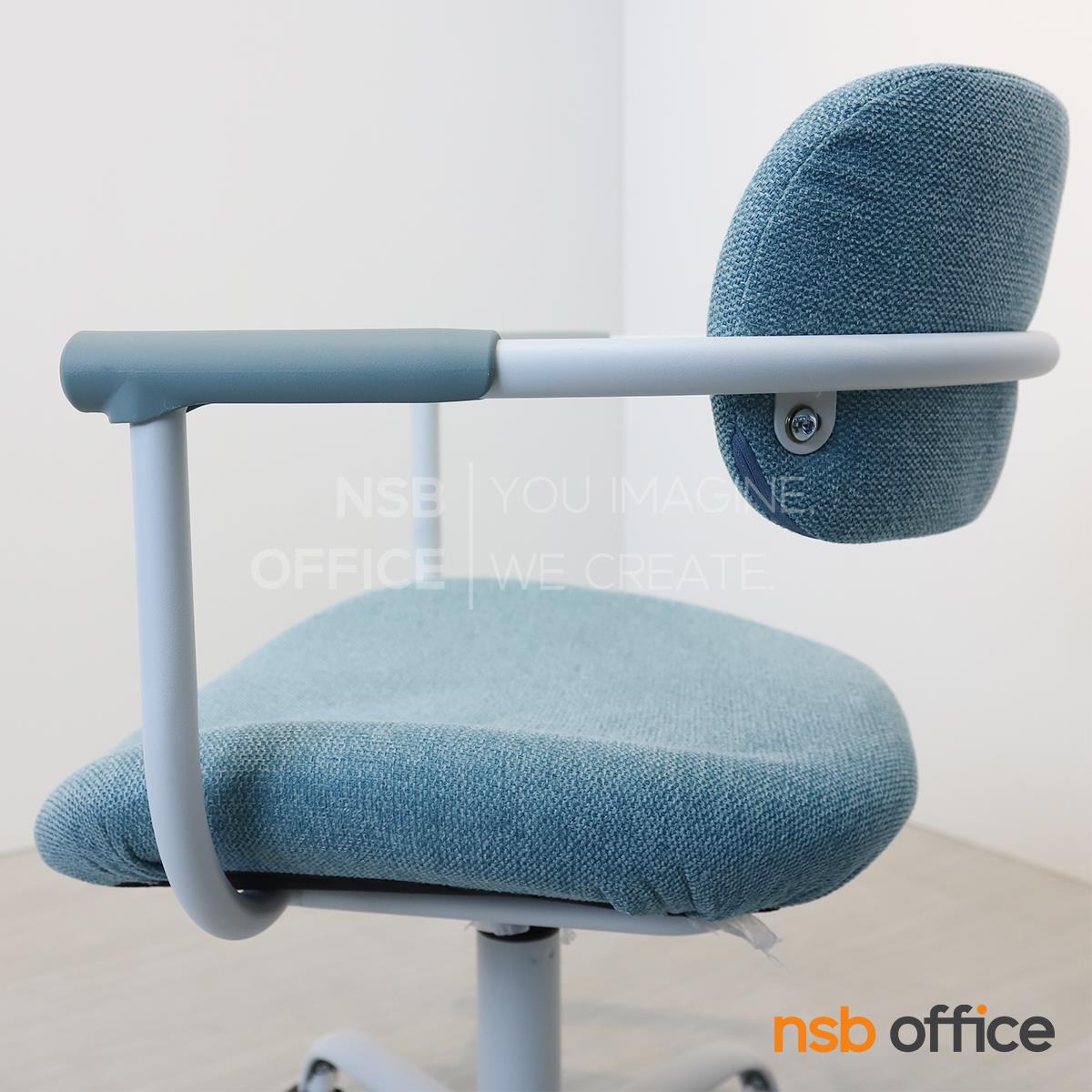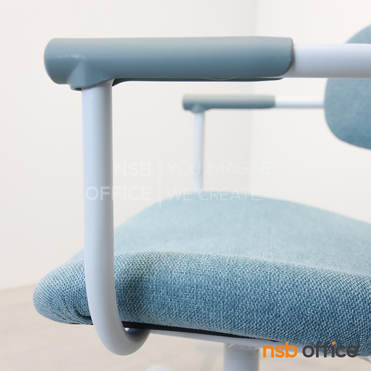 : เก้าอี้สำนักงาน รุ่น Qualid (ควาลิด) โครงสีขาว หุ้มผ้าสีฟ้า ขาเหล็ก
