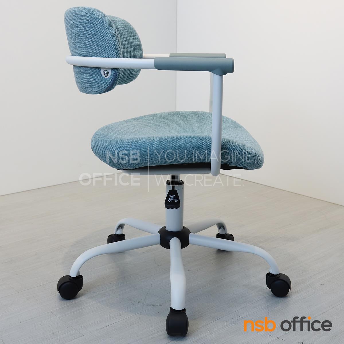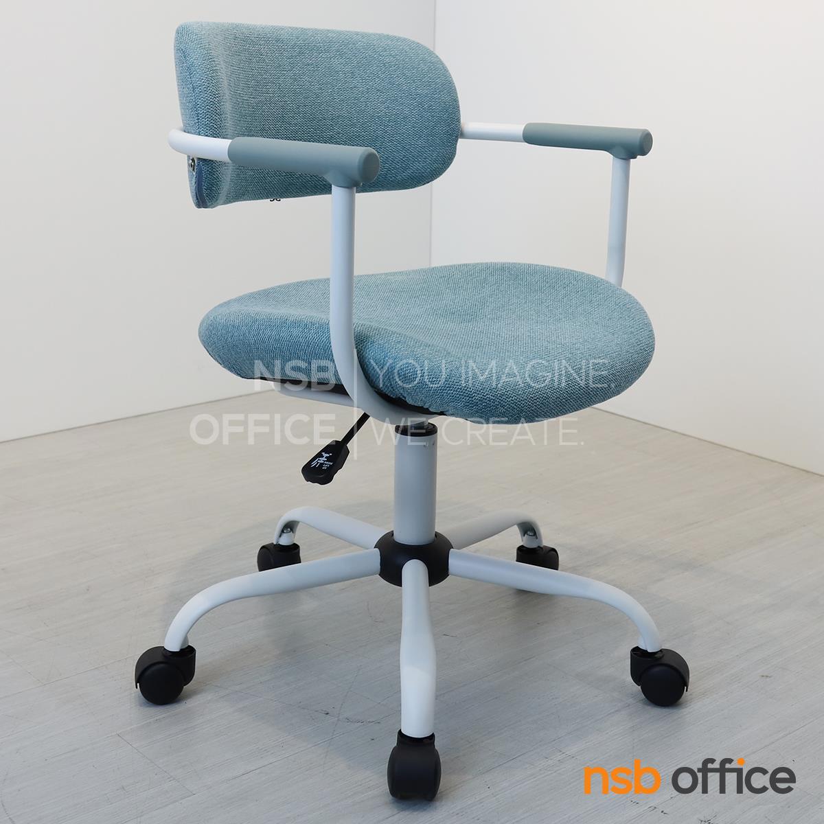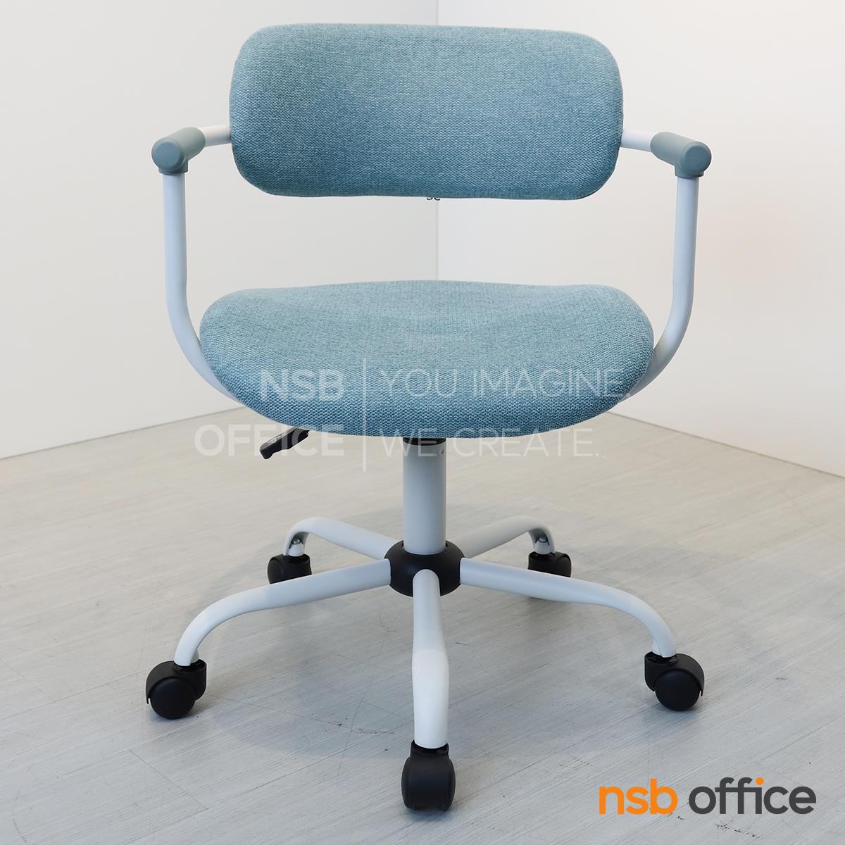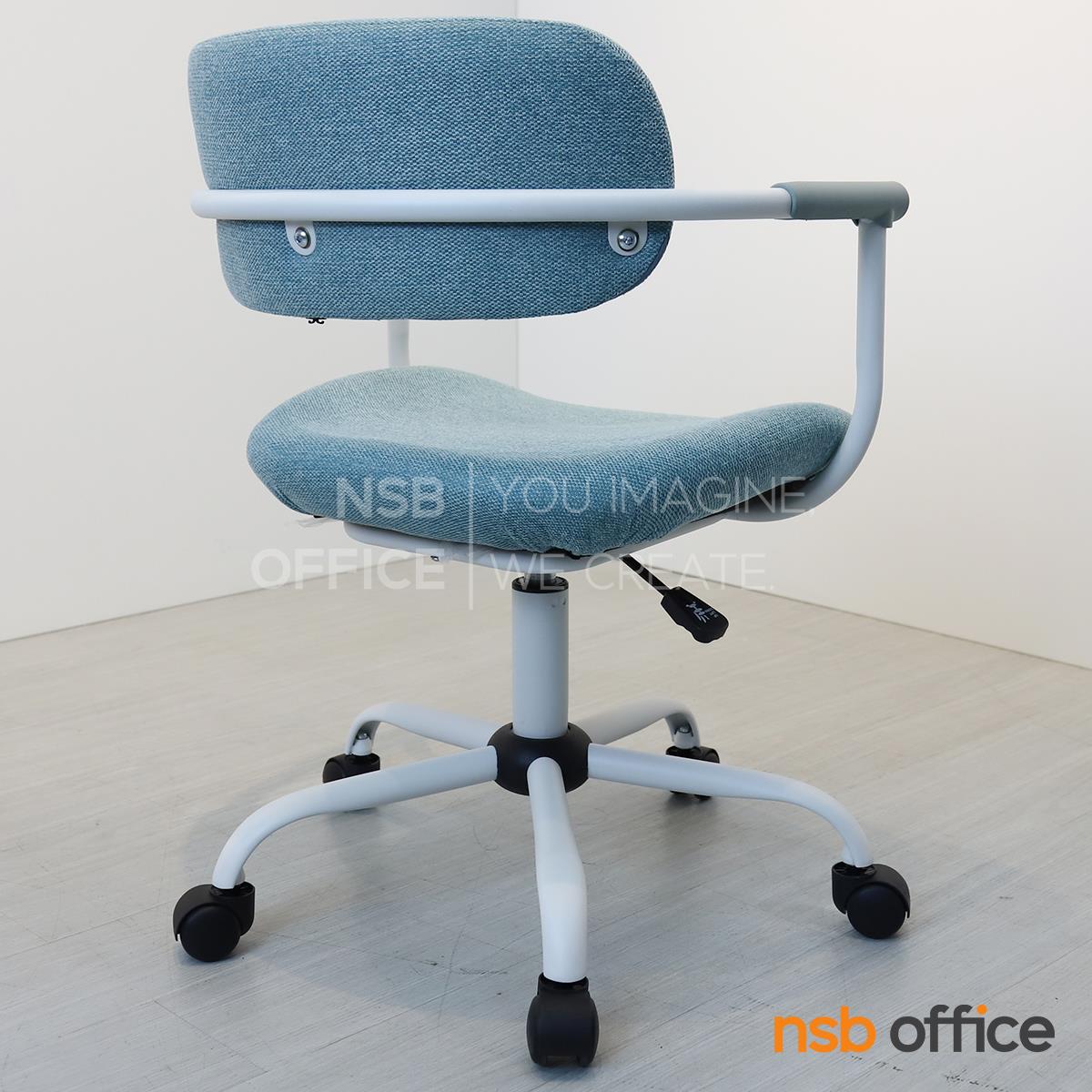 : เก้าอี้สำนักงาน รุ่น Qualid (ควาลิด) โครงสีขาว หุ้มผ้าสีฟ้า ขาเหล็ก