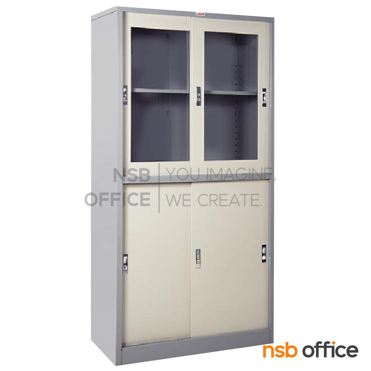 : ตู้เหล็กบนบานเลื่อนกระจก-ล่างบานเลื่อนทึบ รุ่น SLK-0613 ขนาด 91.4W* 45D* 181.7H cm.