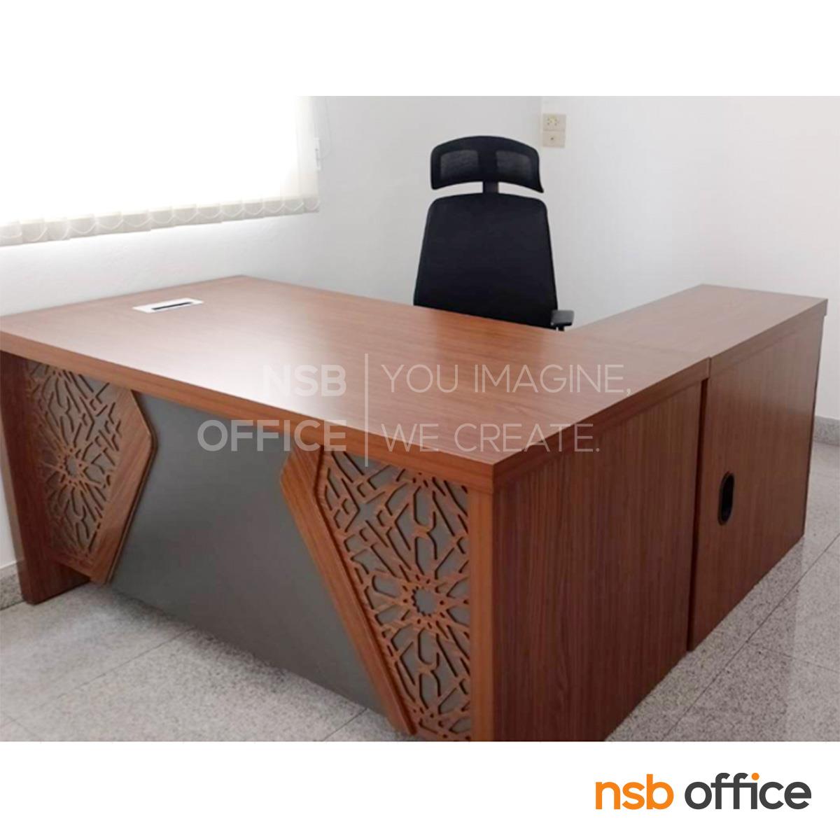 A16A119: โต๊ะผู้บริหารตัวแอล รุ่น Puffy (พัพฟี่) ขนาด 160W , 180W cm. พร้อมตู้ข้างและตู้ลิ้นชักล้อเลื่อน