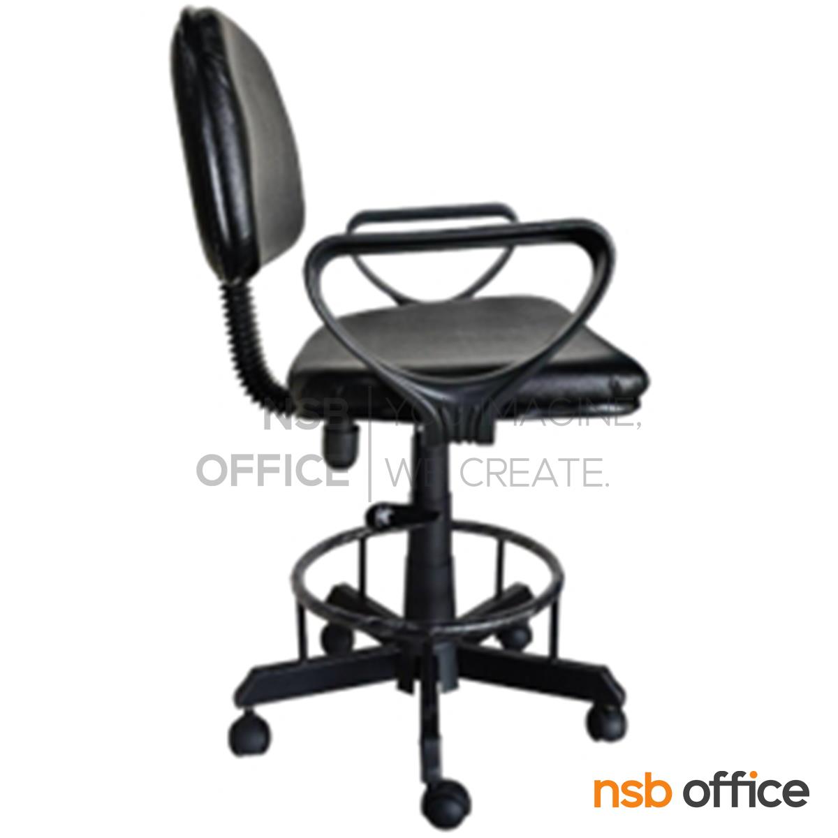 : เก้าอี้บาร์ที่นั่งเหลี่ยมล้อเลื่อน รุ่น Showcase (โชว์เคส) (มีเท้าแขน) โช้คแก๊ส มีก้อนโยก ขาเหล็กกล่อง