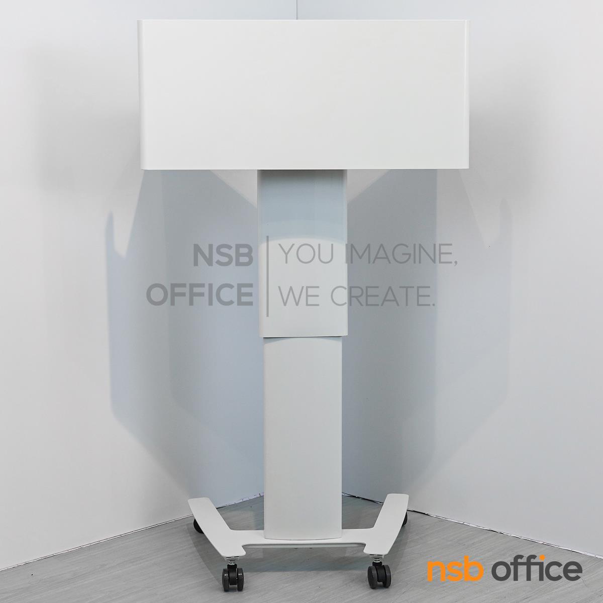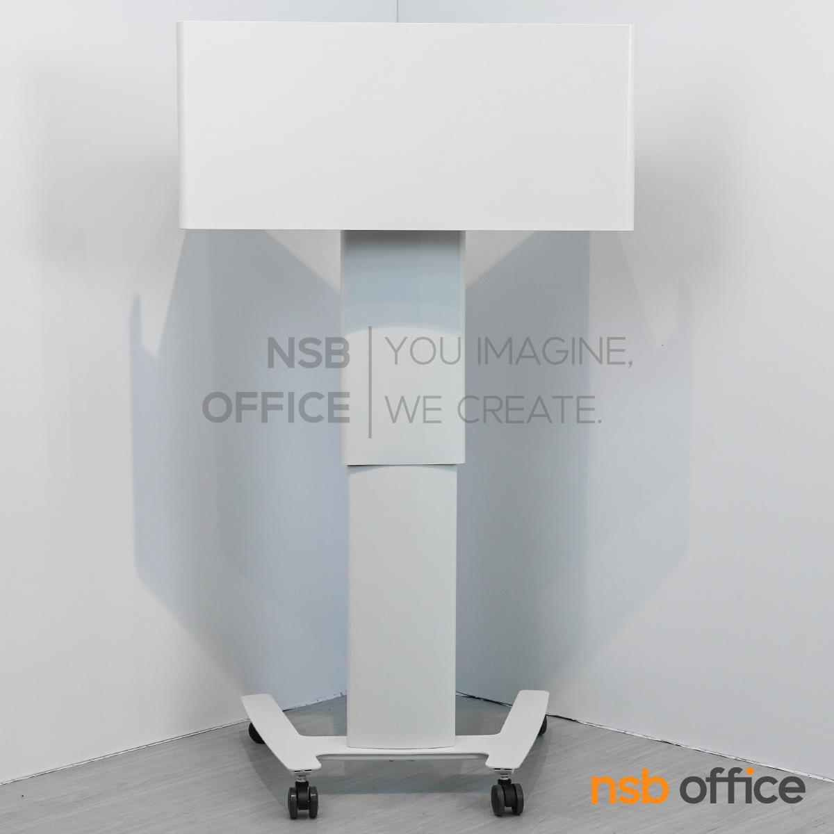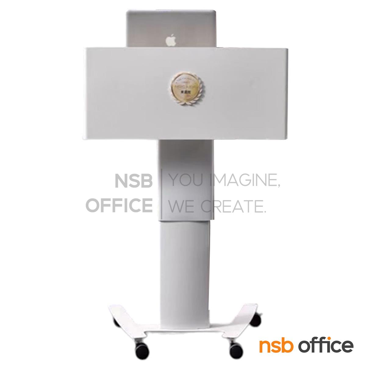 : โพเดี่ยมมีล้อ โต๊ะล้อเลื่อน presenter แบบยืน ปรับสูงต่ำได้ รุ่น Greenforst (กรีนฟอร์ส) โครงขาเหล็ก