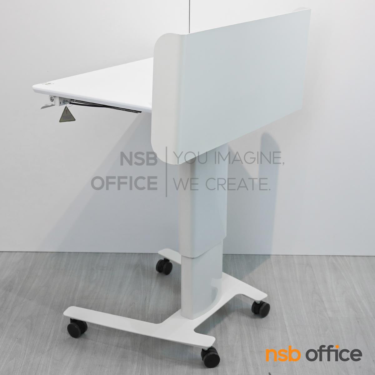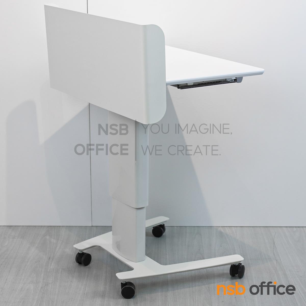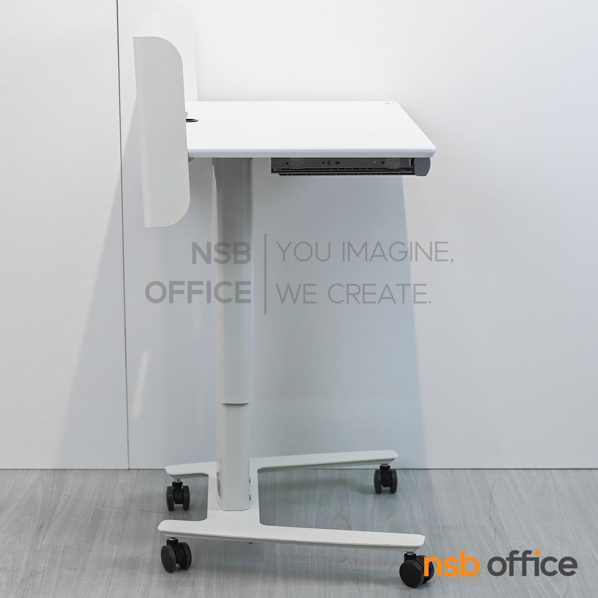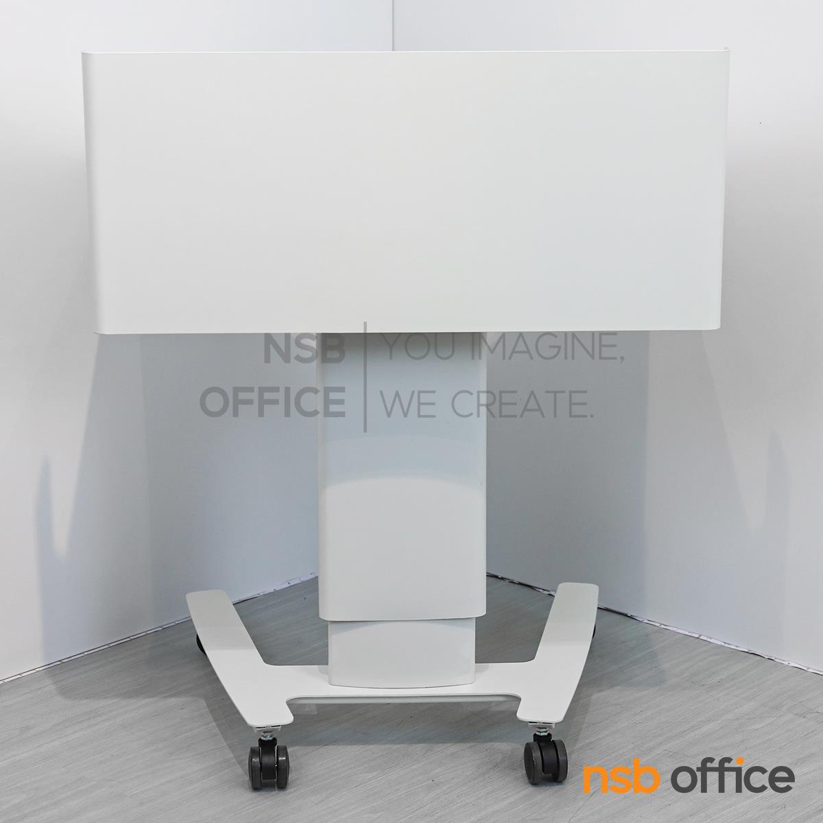 : โพเดี่ยมมีล้อ โต๊ะล้อเลื่อน presenter แบบยืน ปรับสูงต่ำได้ รุ่น Greenforst (กรีนฟอร์ส) โครงขาเหล็ก