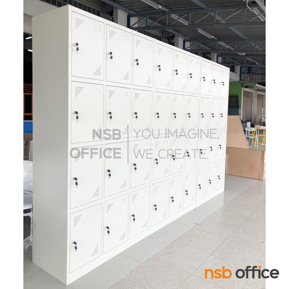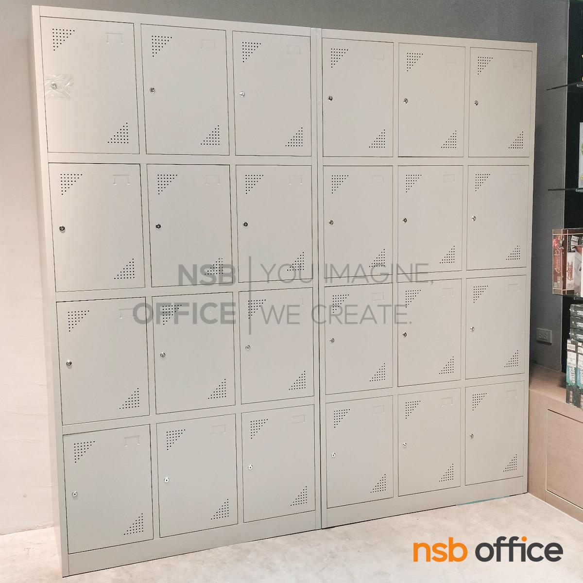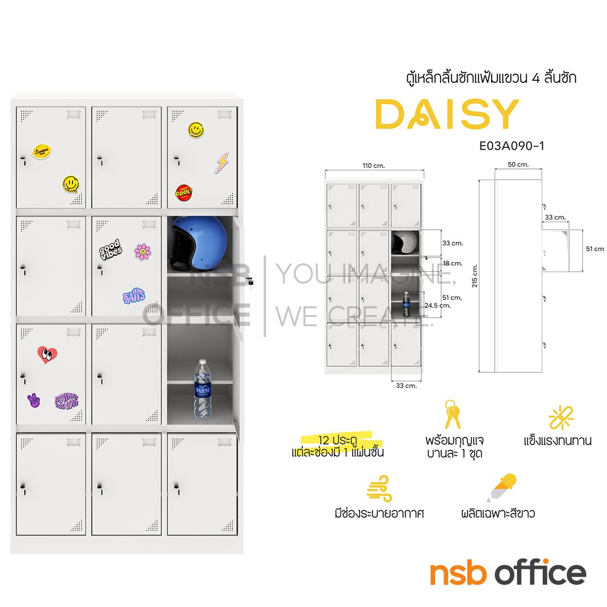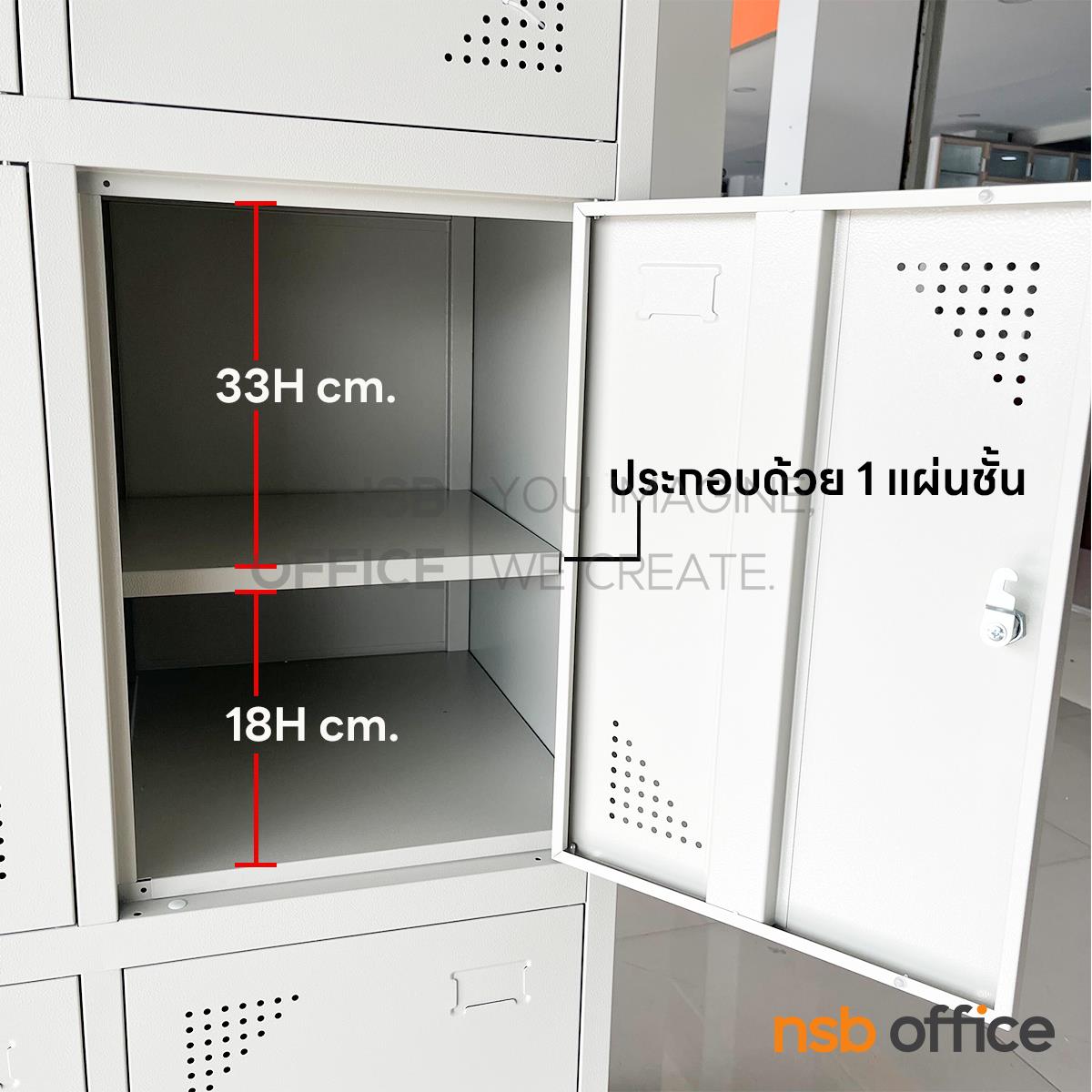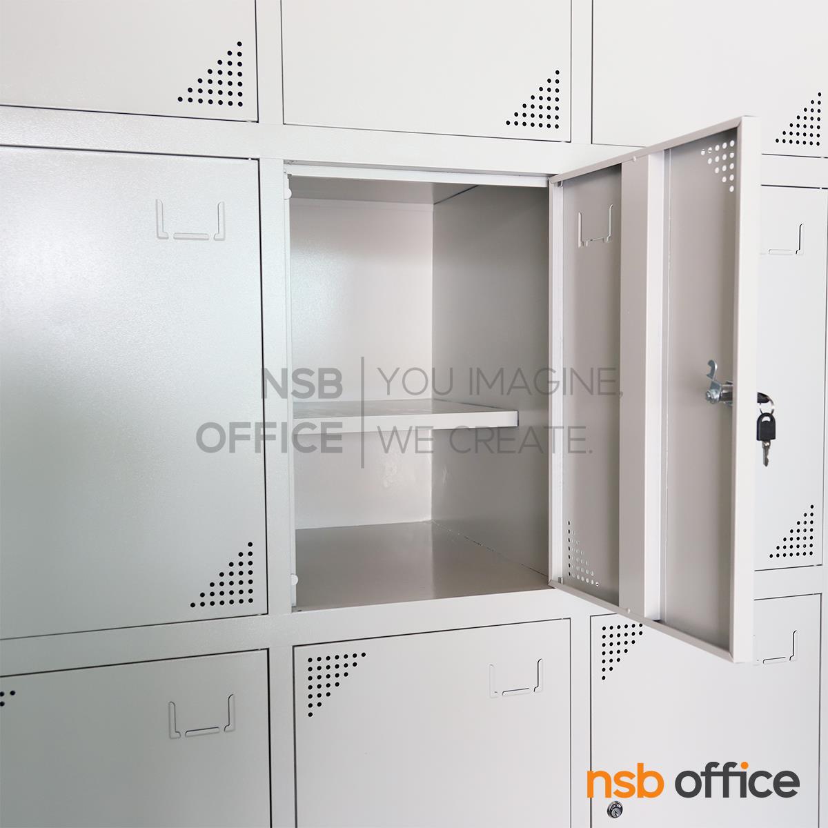 E03A090: ตู้ล็อกเกอร์เหล็ก 12 ประตู ด้านบนสามารถวางหมวกกันน็อคได้ ด้านล่างวางรองเท้าเซฟตี้ ด้านหน้าวางน้ำดื่ม รุ่น Daisy (เดซี่) ขนาด 110W*50D*215H cm.
