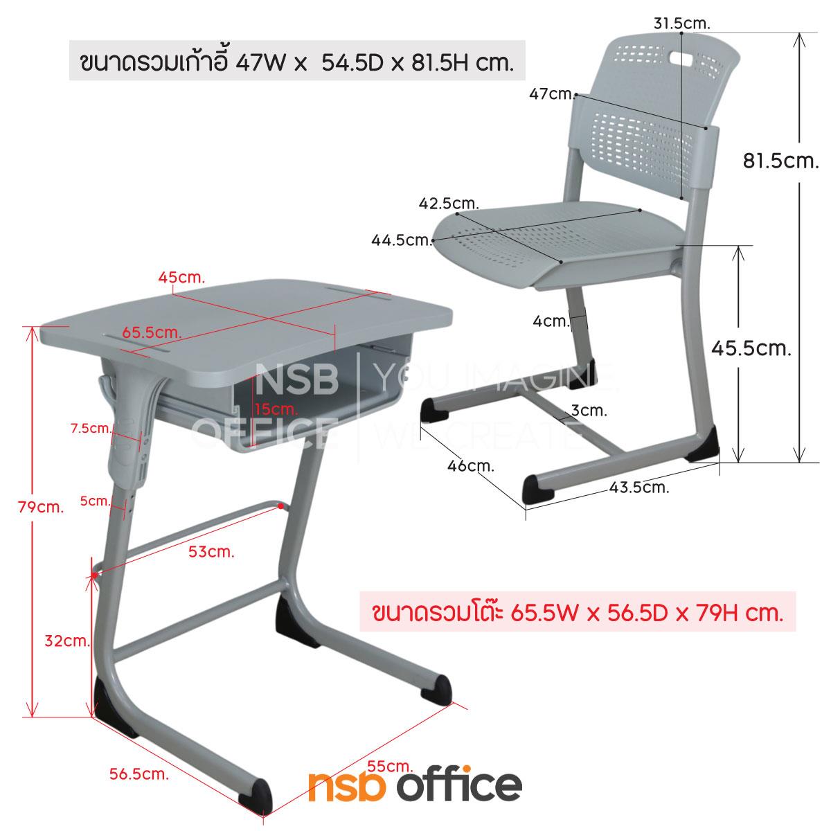 : ชุดโต๊ะและเก้าอี้นักเรียน รุ่น Audi (ออดี้) (ไม่มีตระกร้า) สามารถปรับระดับได้
