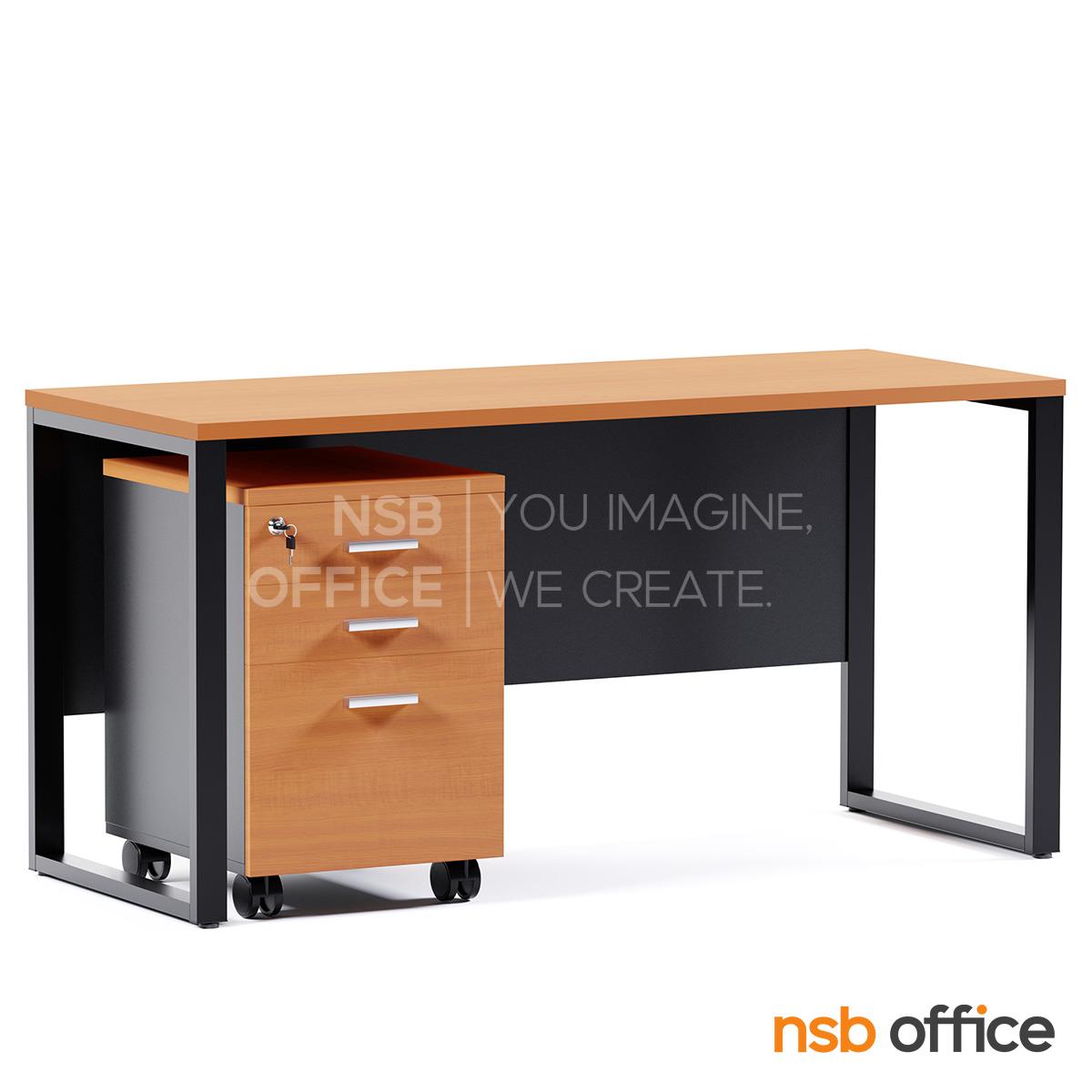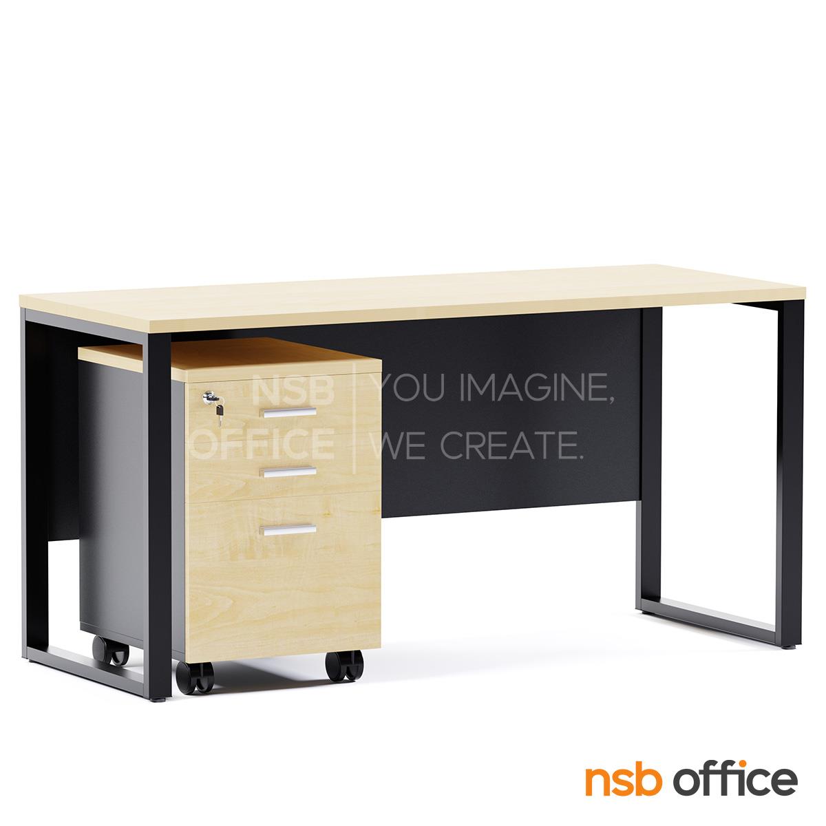 : โต๊ะทำงานขาเหล็ก รุ่น Hendrix (เฮนดริค) ขนาด 150W cm. บังตาไม้ พร้อมตู้ลิ้นชักล้อเลื่อน
