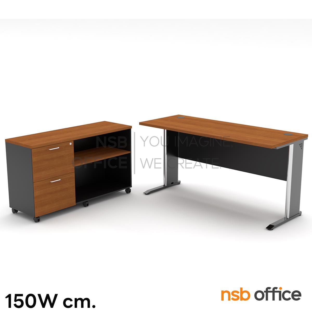 A12A095: โต๊ะทำงาน รุ่น Dornez (โดเนซ) ขนาด 150W cm. พร้อมตู้ข้างล้อเลื่อน