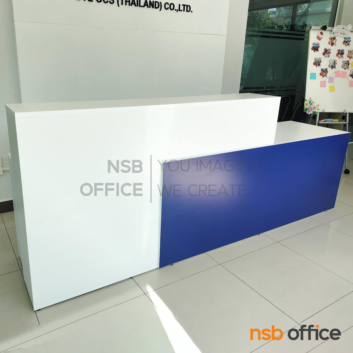 : เคาน์เตอร์ต้อนรับลูกค้า Reception รุ่น Estro (เอสโตร) ขนาด 280 cm. สีพิเศษ พร้อมเจาะรูร้อยสายไฟ A04A049
