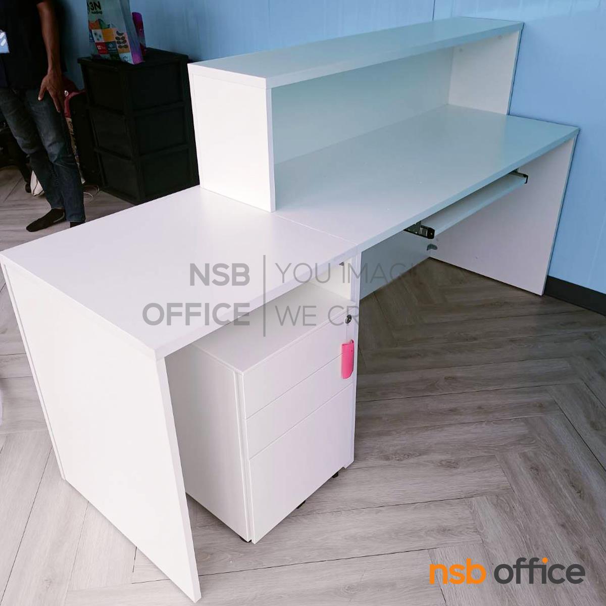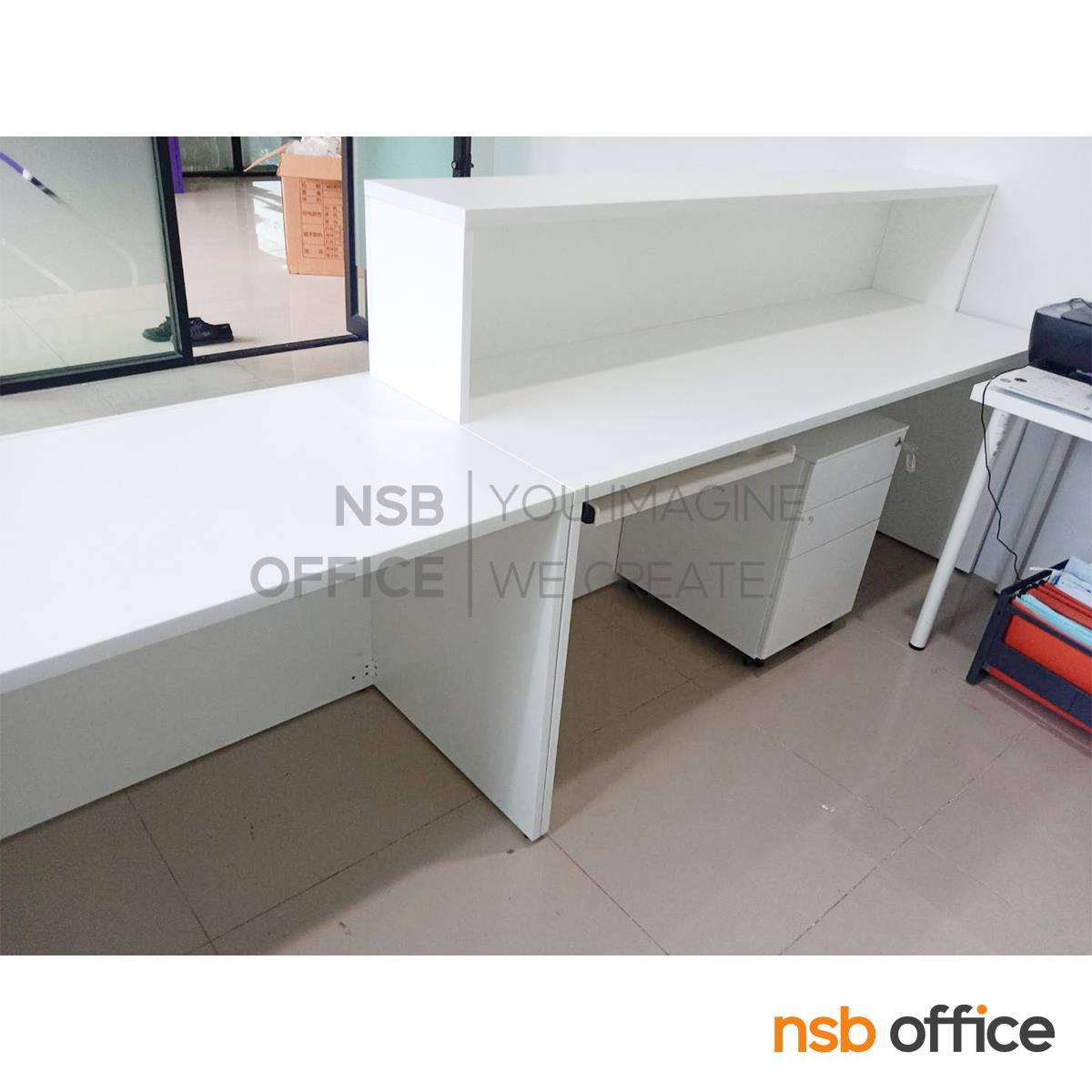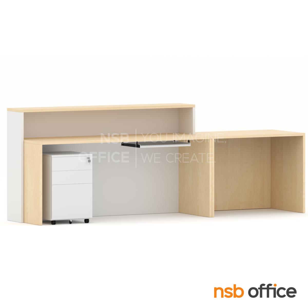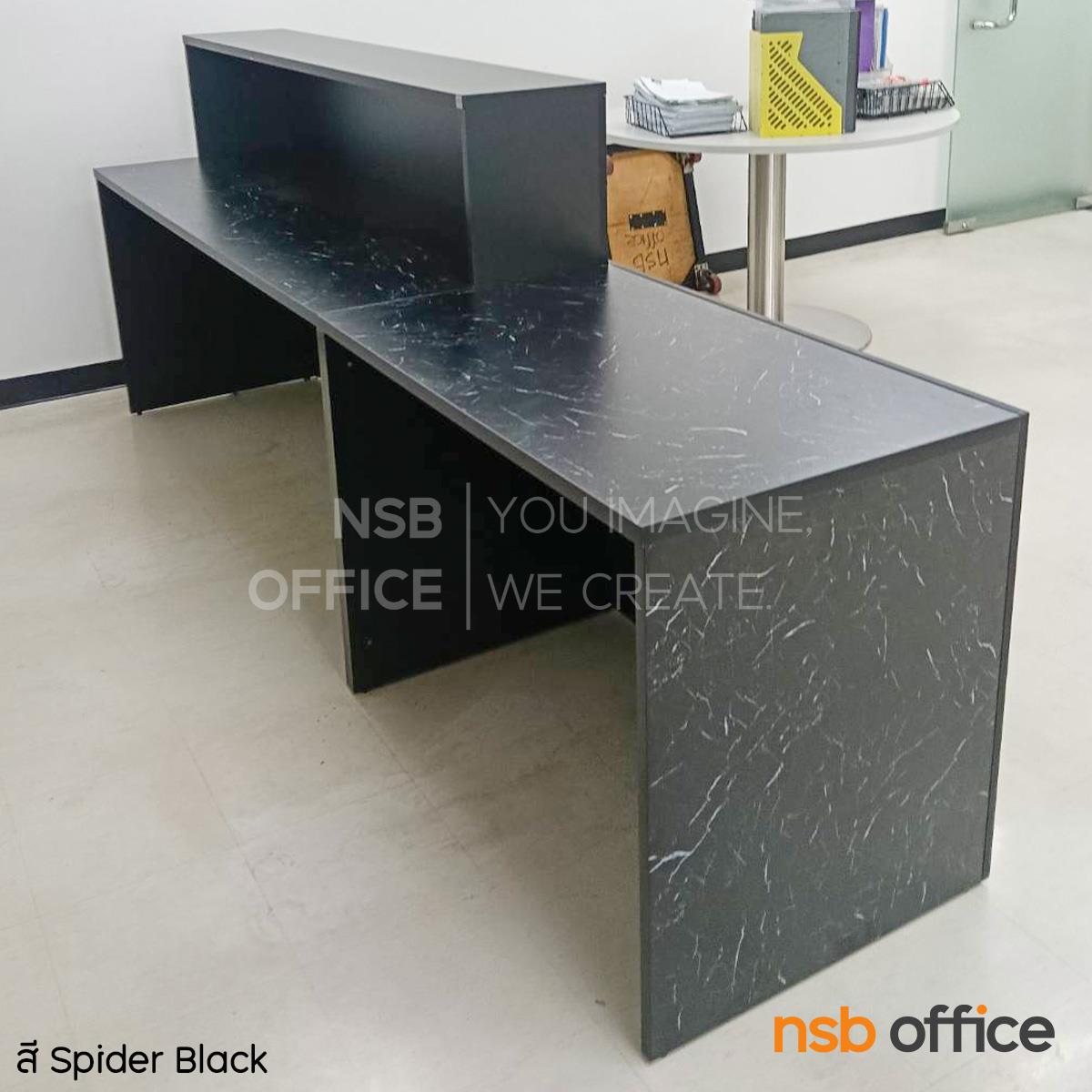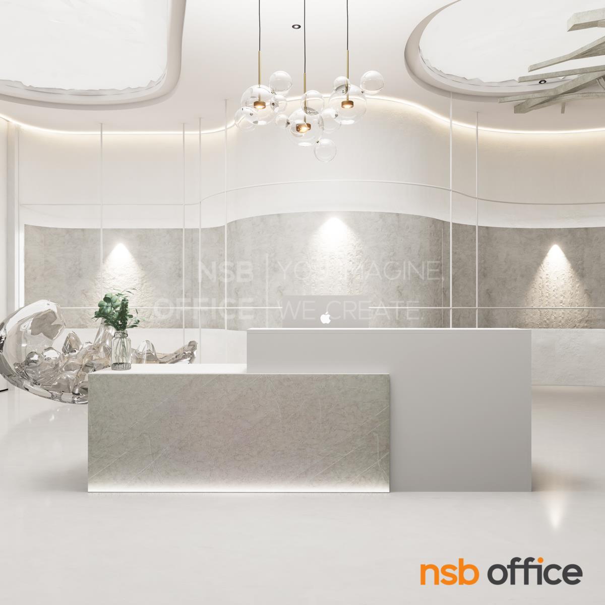 : เคาน์เตอร์ต้อนรับลูกค้า Reception รุ่น Estro (เอสโตร) ขนาด 280 cm. สีมาตรฐาน พร้อมเจาะรูร้อยสายไฟ A04A049