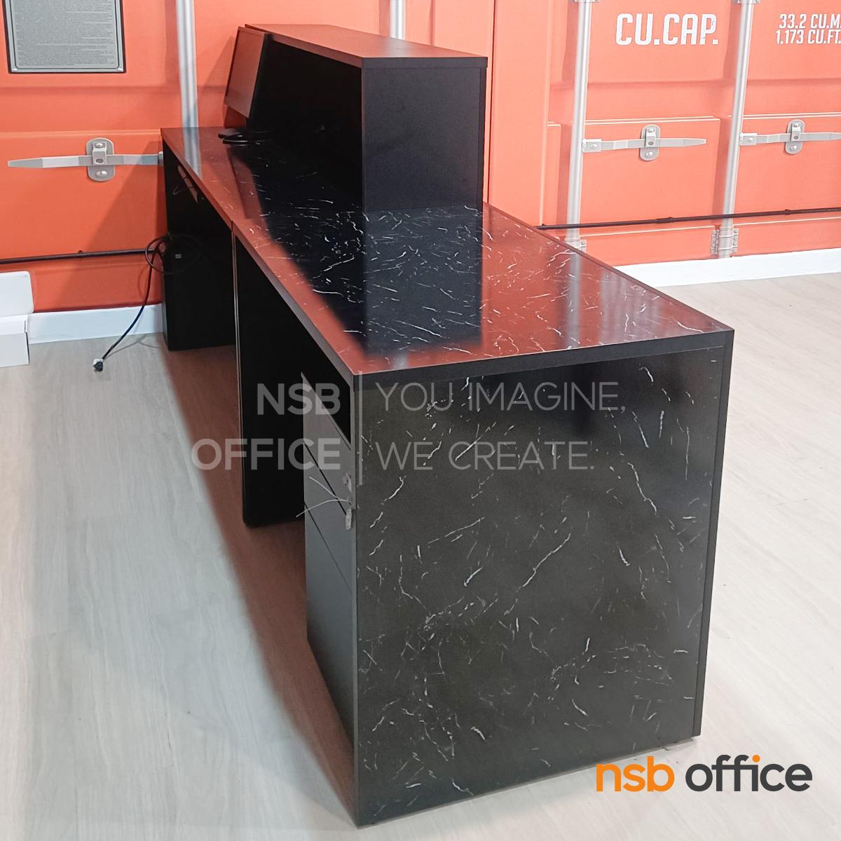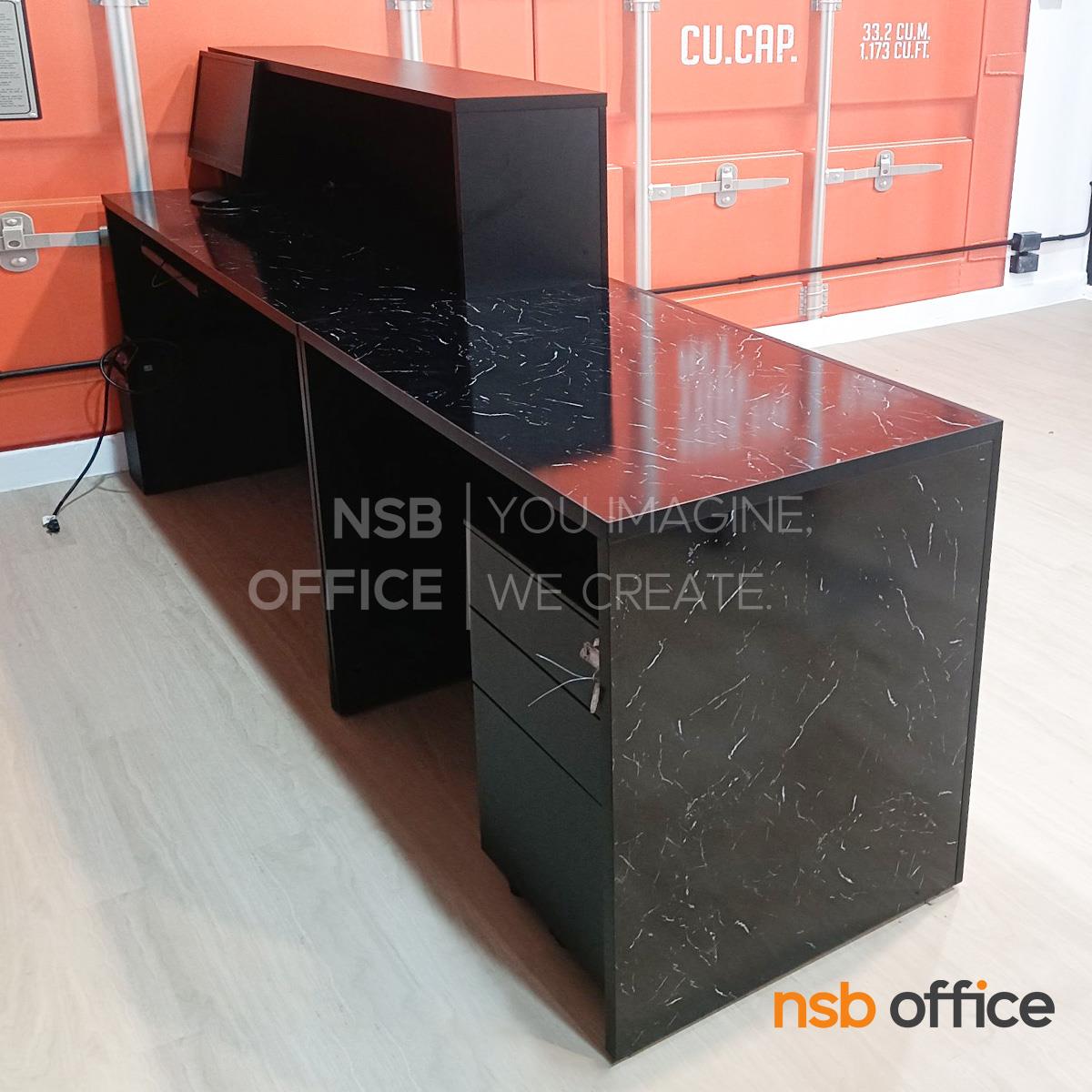 A11A108: เคาน์เตอร์ต้อนรับลูกค้า Reception รุ่น Estro (เอสโตร) ขนาด 280W cm. (ด้านใน 3 ลิ้นชักล้อเลื่อน 1 รางคีย์บอร์ด)
