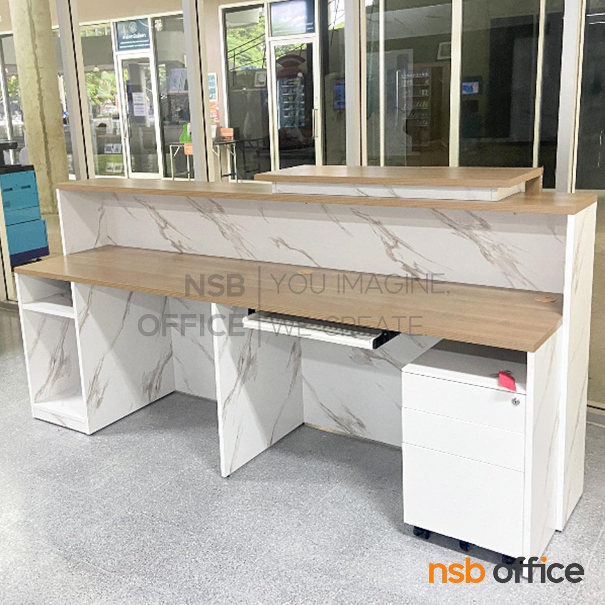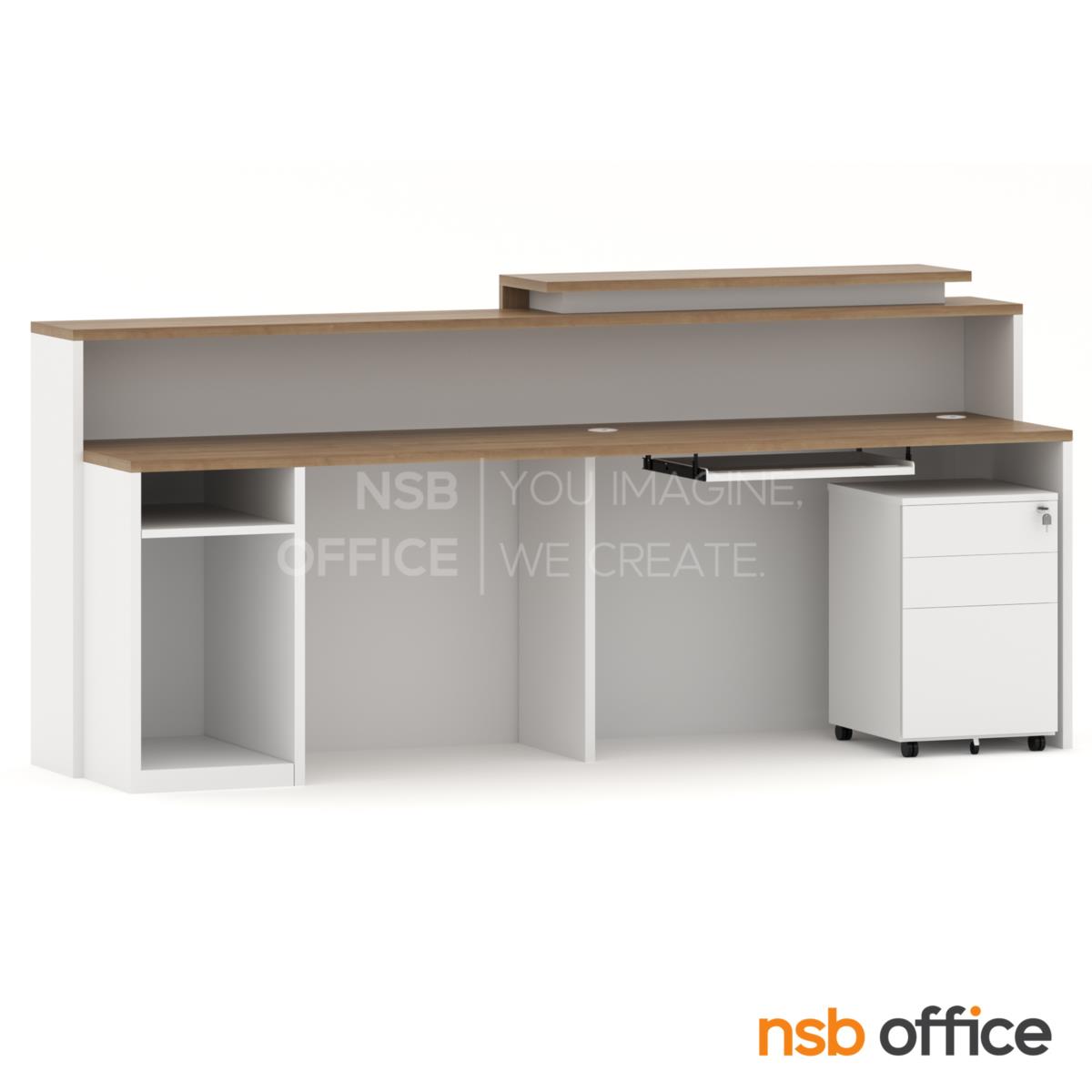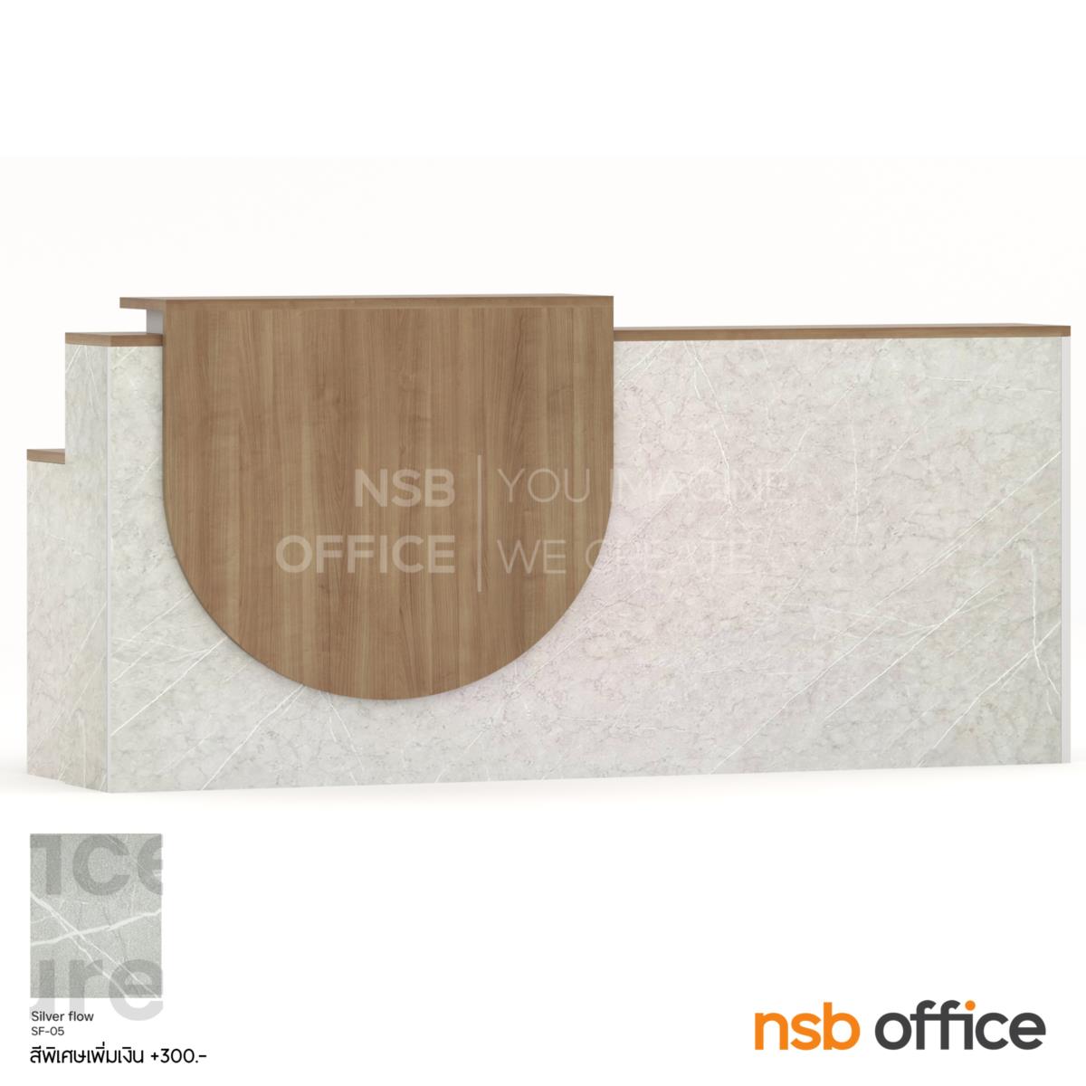 A11A109: เคาน์เตอร์ต้อนรับ Reception รุ่น Bubble Gum (บับเบิ้ลกัม) ขนาด 240W cm. (ด้านใน 3 ลิ้นชักล้อเลื่อน 1 รางคีย์บอร์ด)