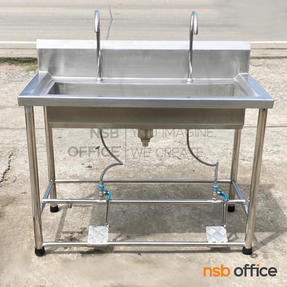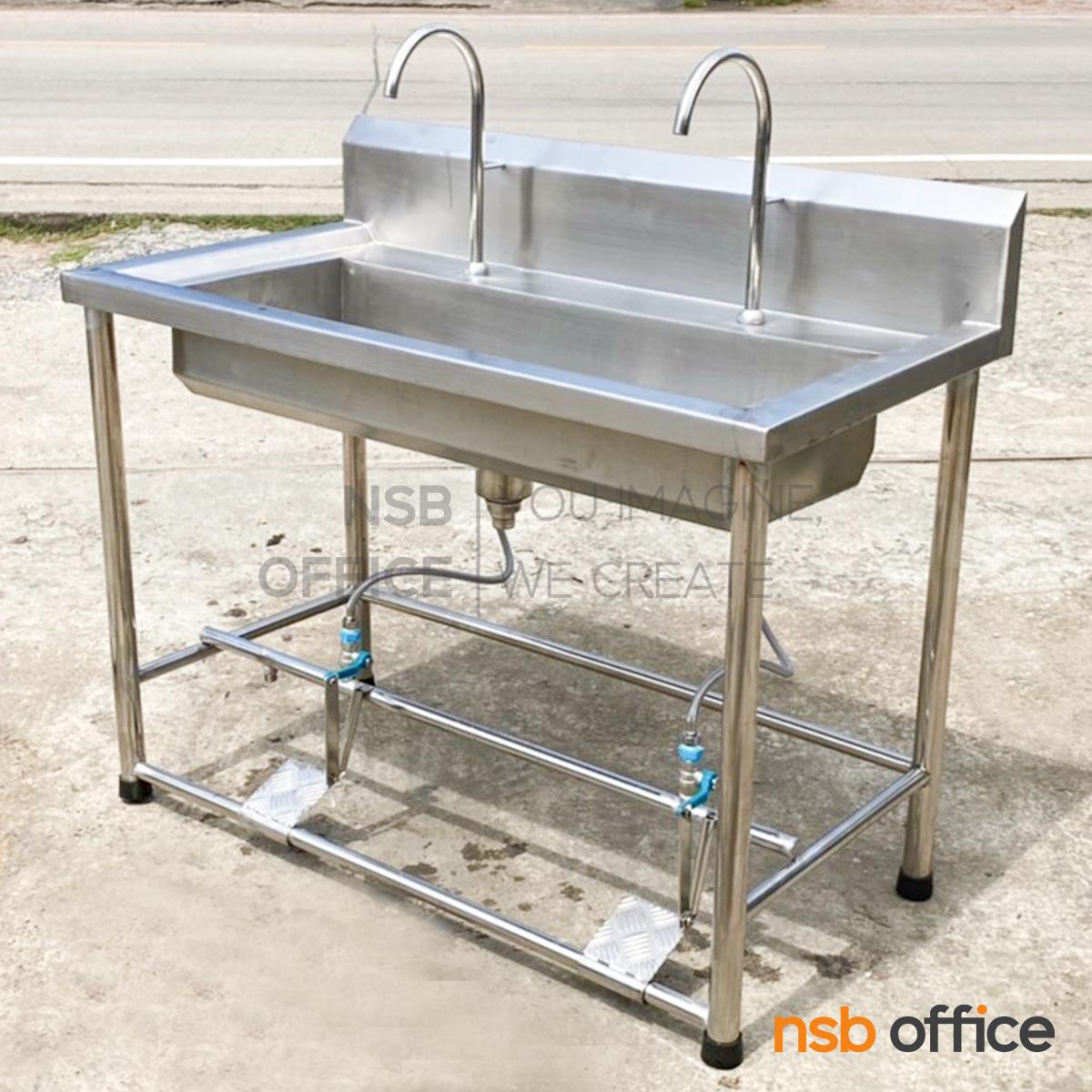 อ่างล้างมือ 1 หลุมยาว 2 ก็อกน้ำ เท้าเหยียบ
