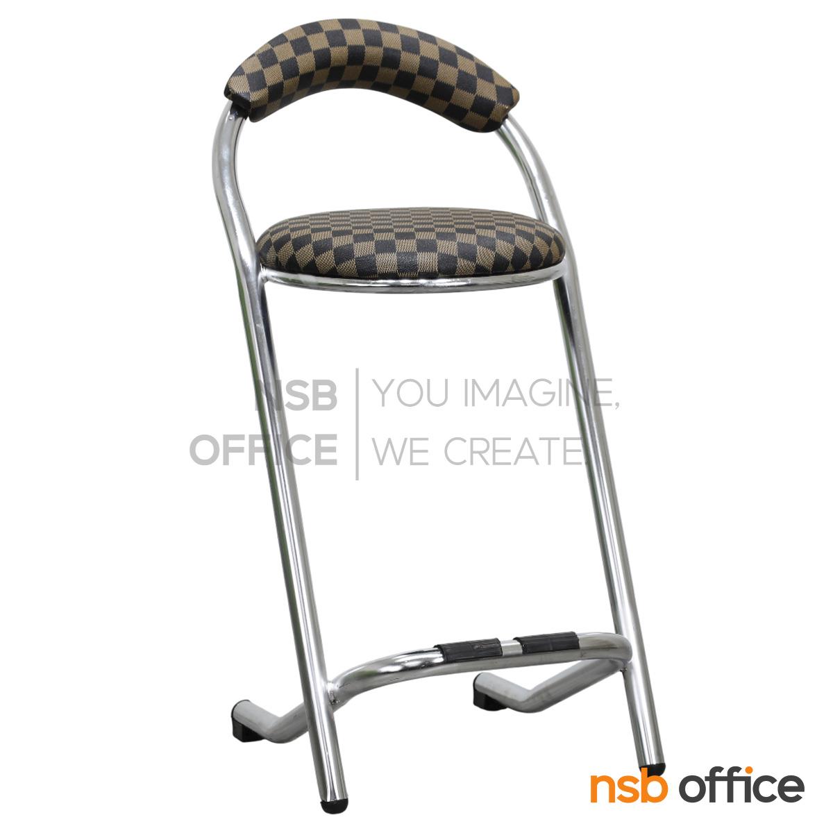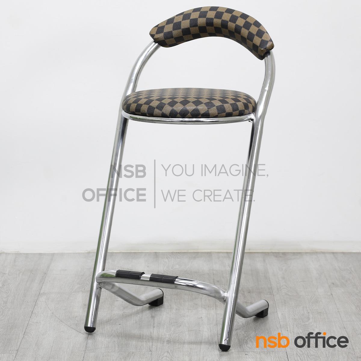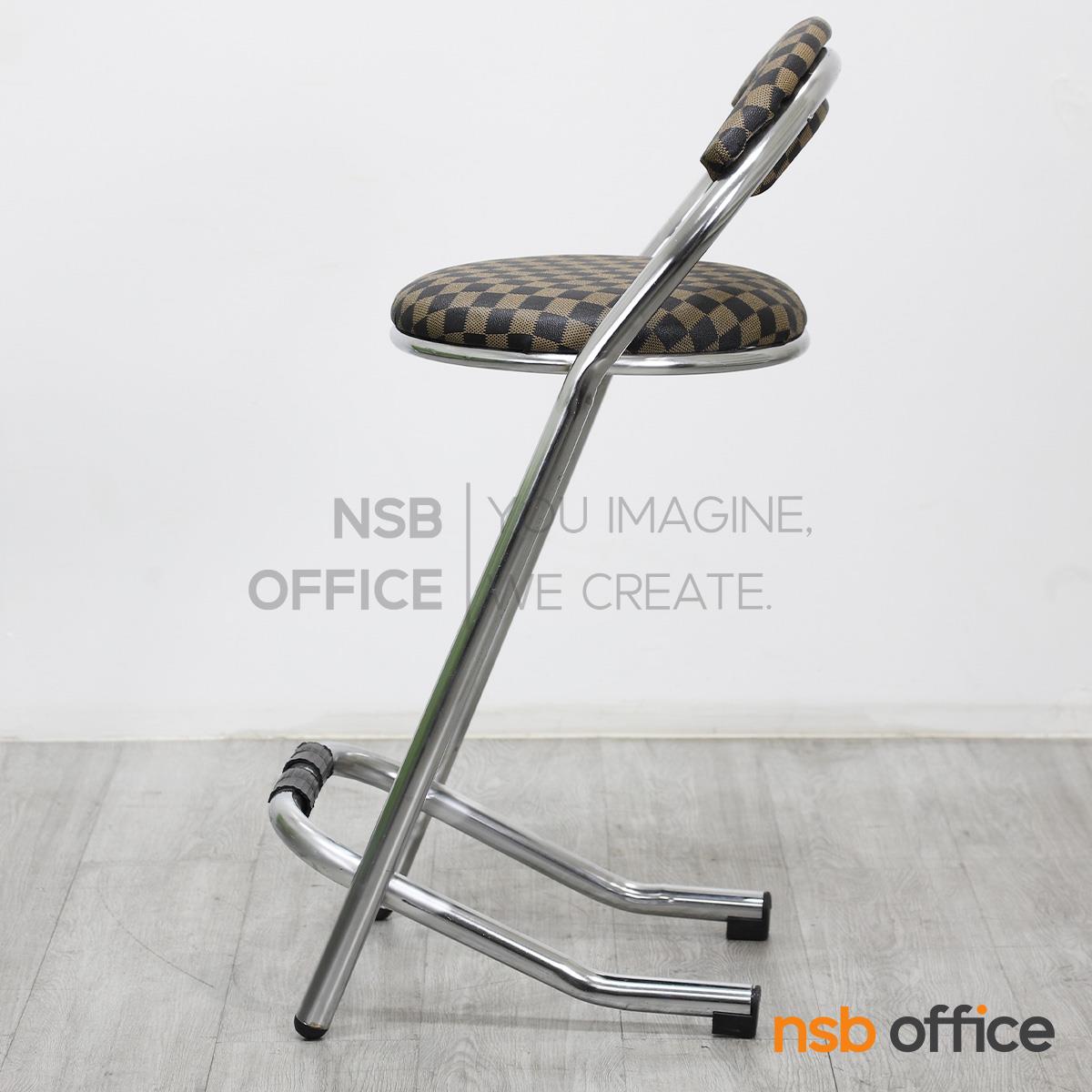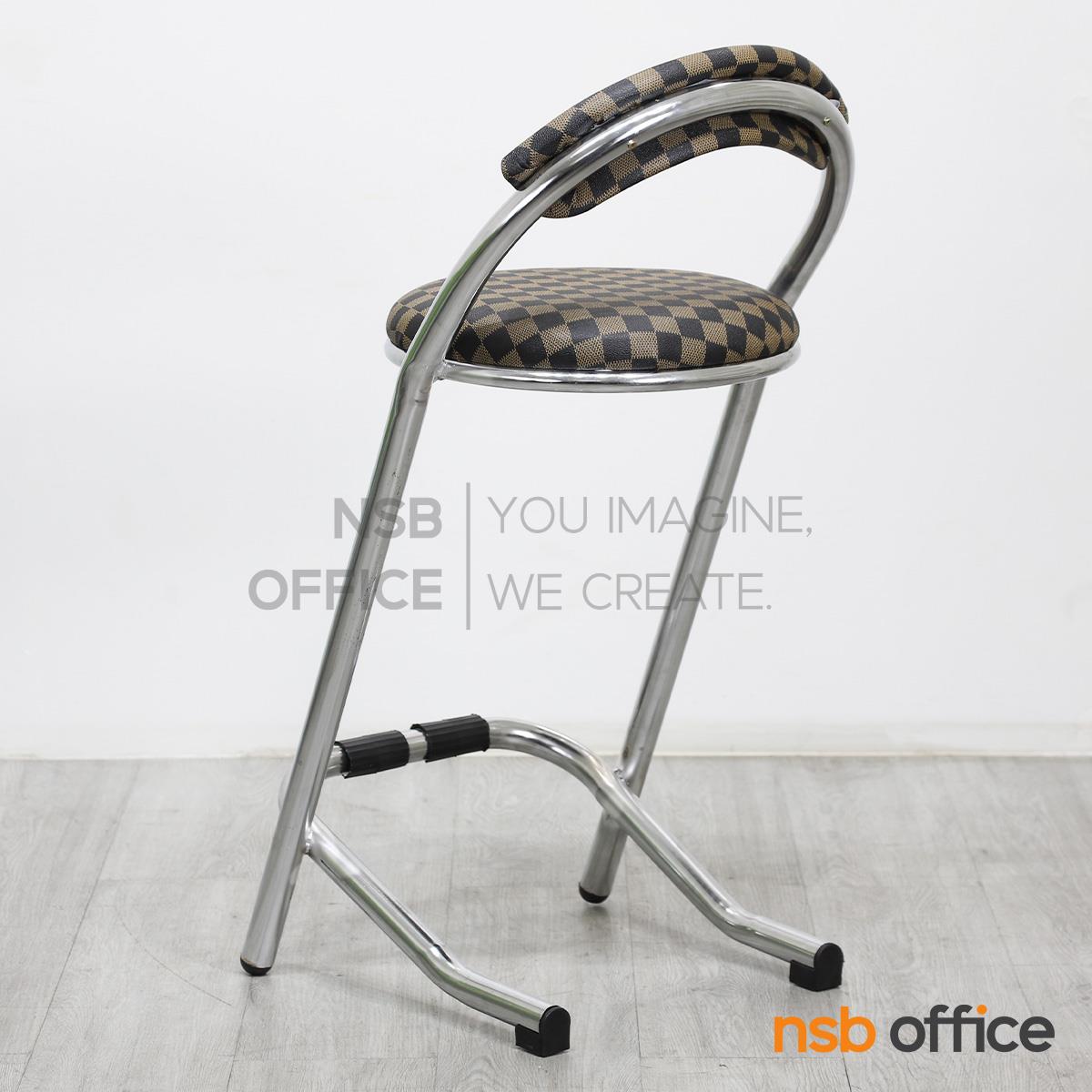 : เก้าอี้บาร์สตูลที่นั่งกลม รุ่น Cacia (เคเชีย) สีน้ำตาลลายตาราง ขาเหล็ก
