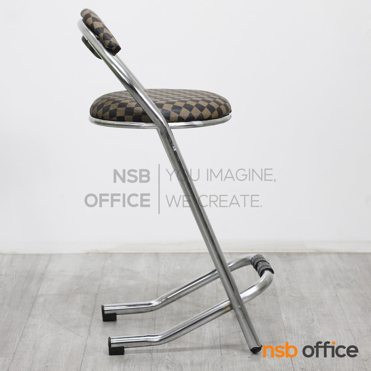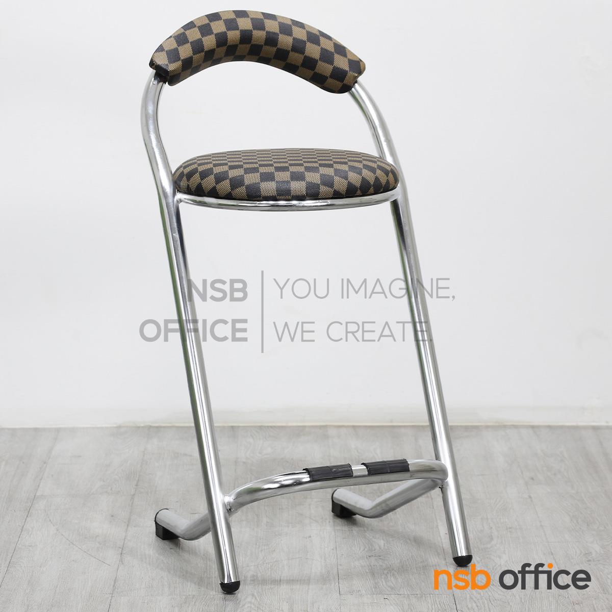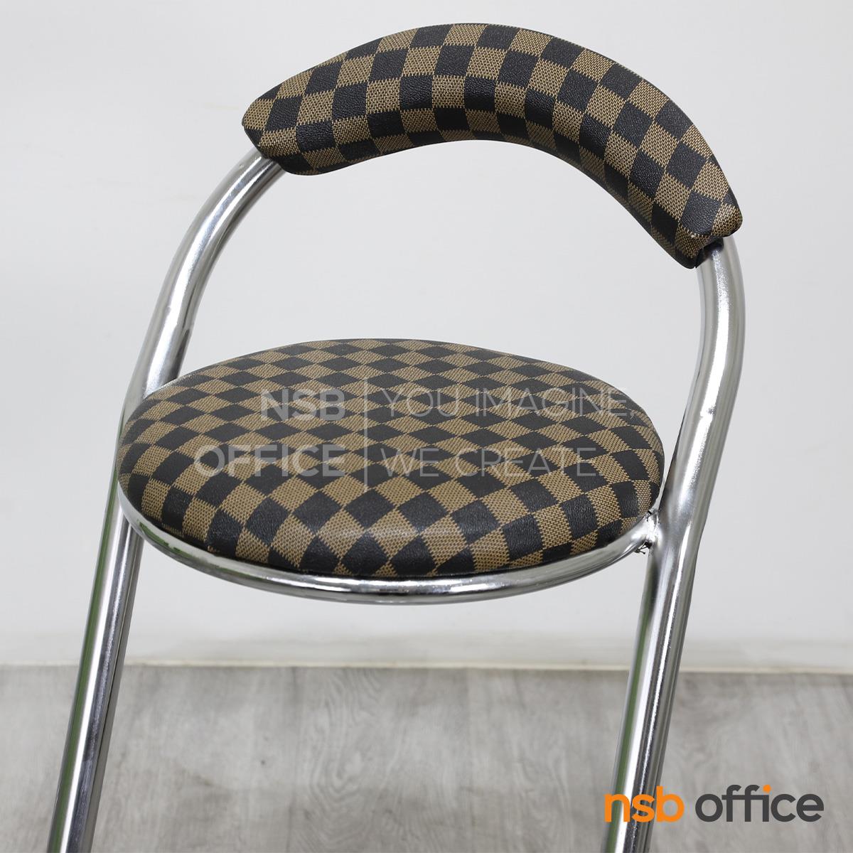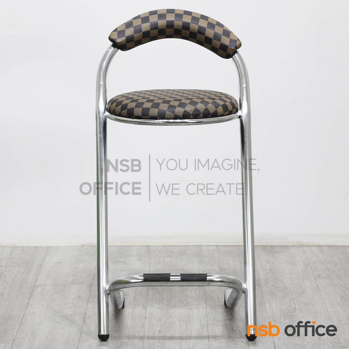 : เก้าอี้บาร์สตูลที่นั่งกลม รุ่น Cacia (เคเชีย) สีน้ำตาลลายตาราง ขาเหล็ก