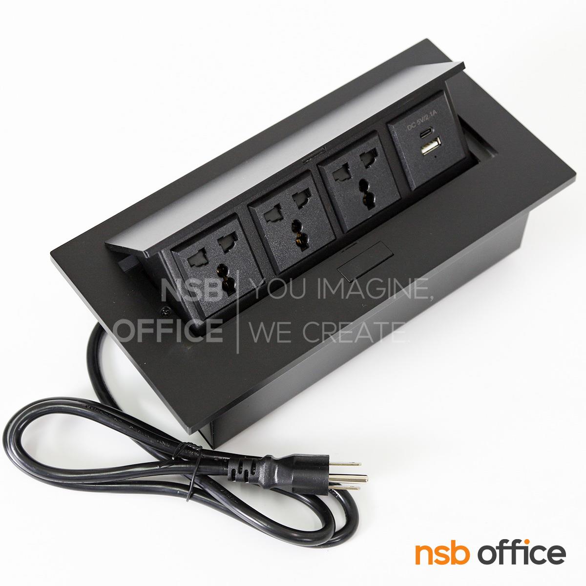 A24A080: ป๊อปอัพสี่เหลี่ยม 3 ปลั๊กเสียบ รุ่น Stelvia (สเตลเวีย) 2 USB มาพร้อมสายไฟต่อยาว 1.5 เมตร