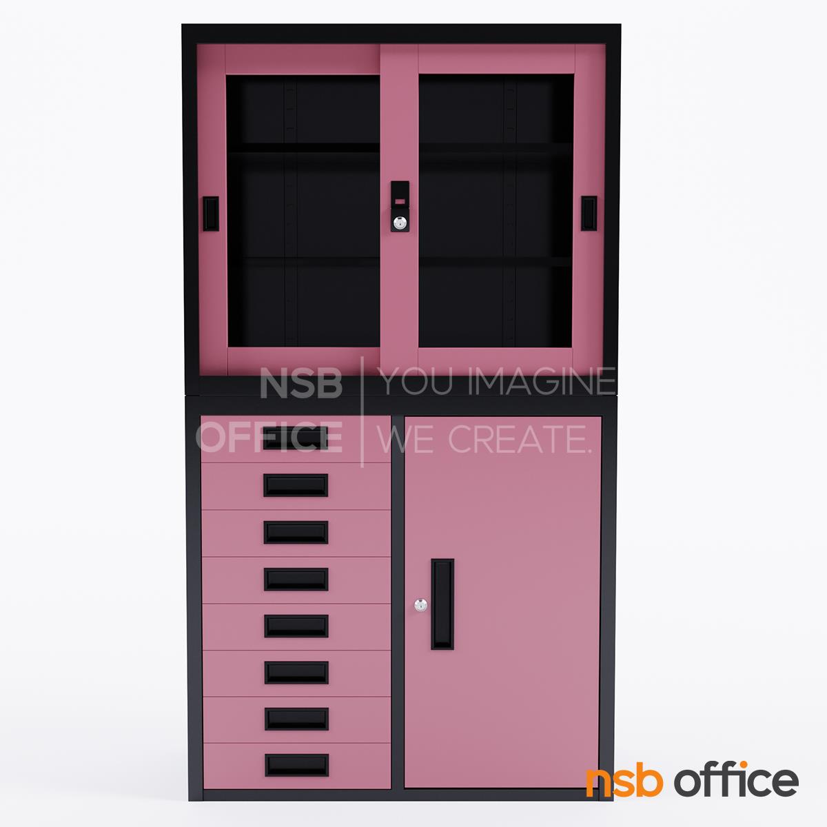 : ตู้เก็บเอกสารบนบานเลื่อนกระจกล่าง 1 บานเปิด 8 ลิ้นชัก รุ่น Waldo (วัลโด้)